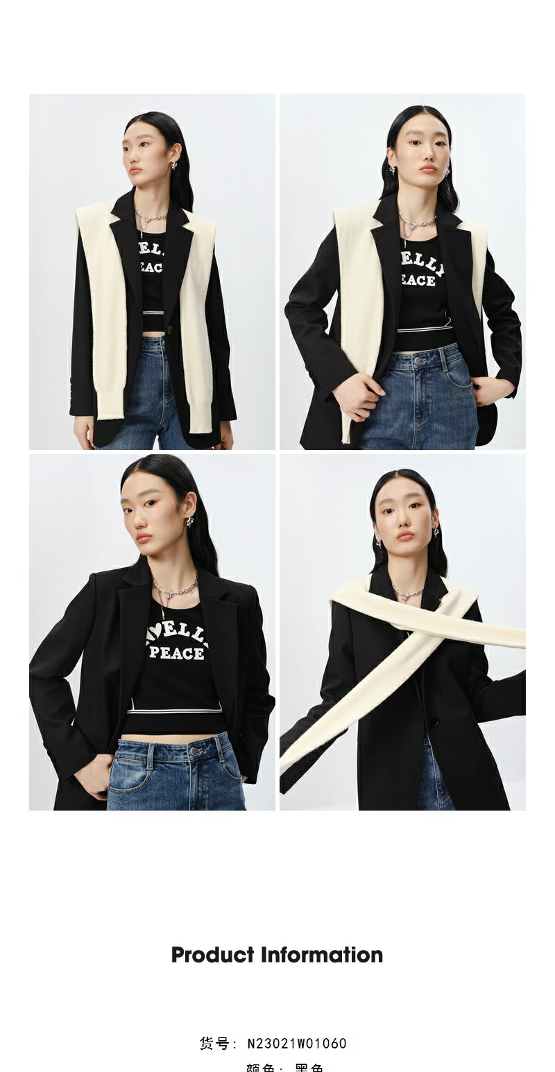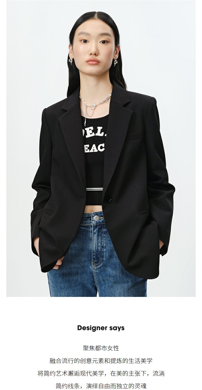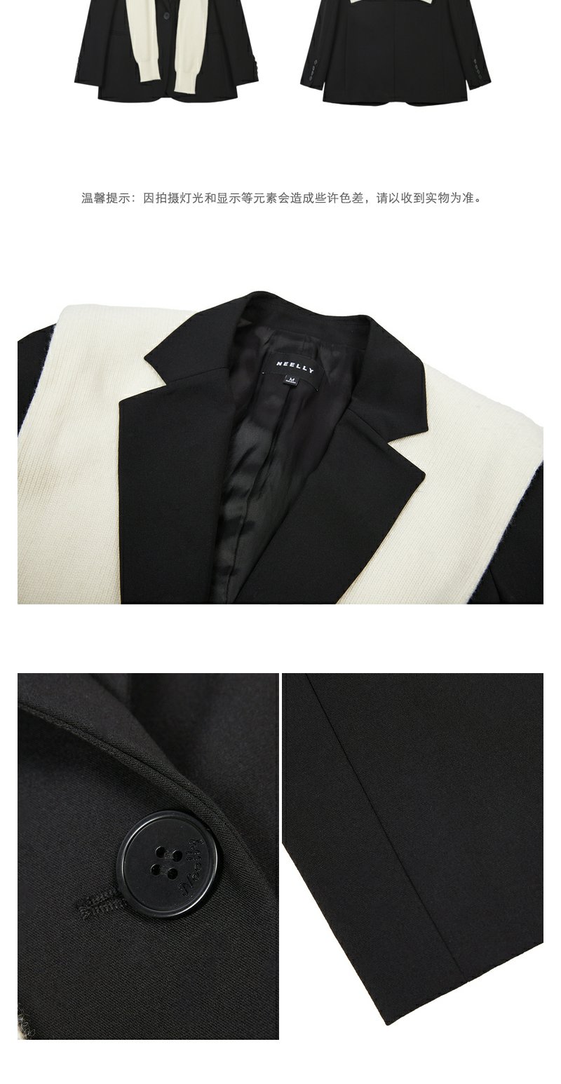 NEELLY纳俪商场同款黑色西装外套女2023春季新款一粒扣上衣时尚N23021W01060