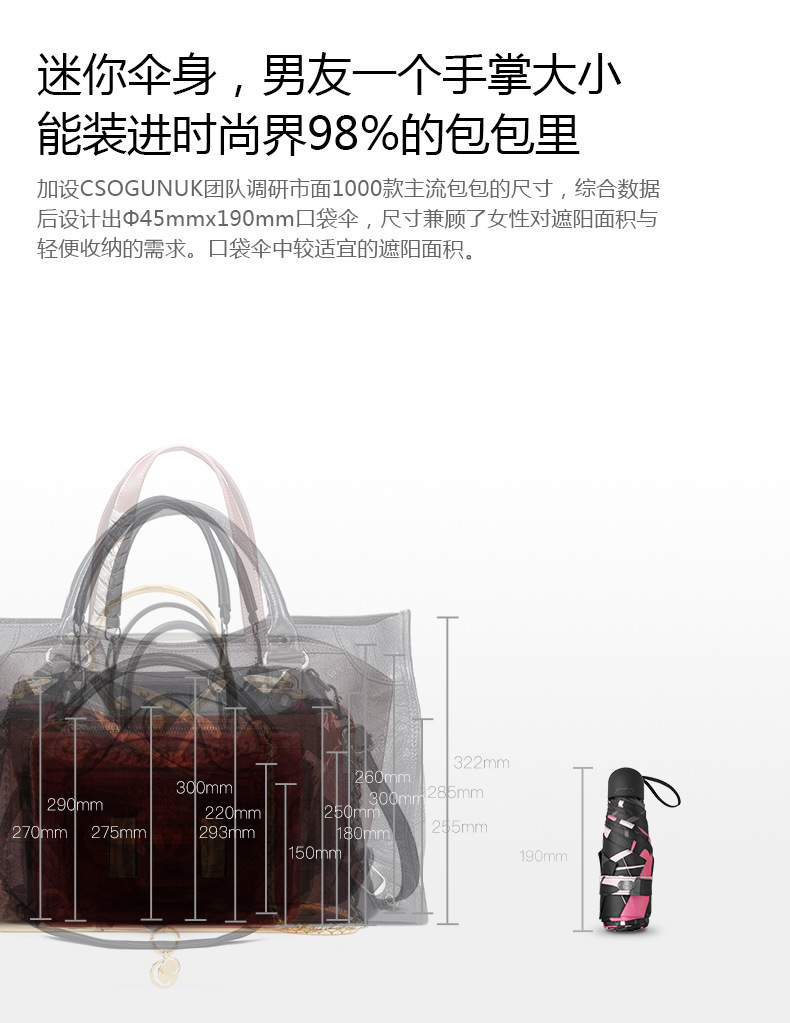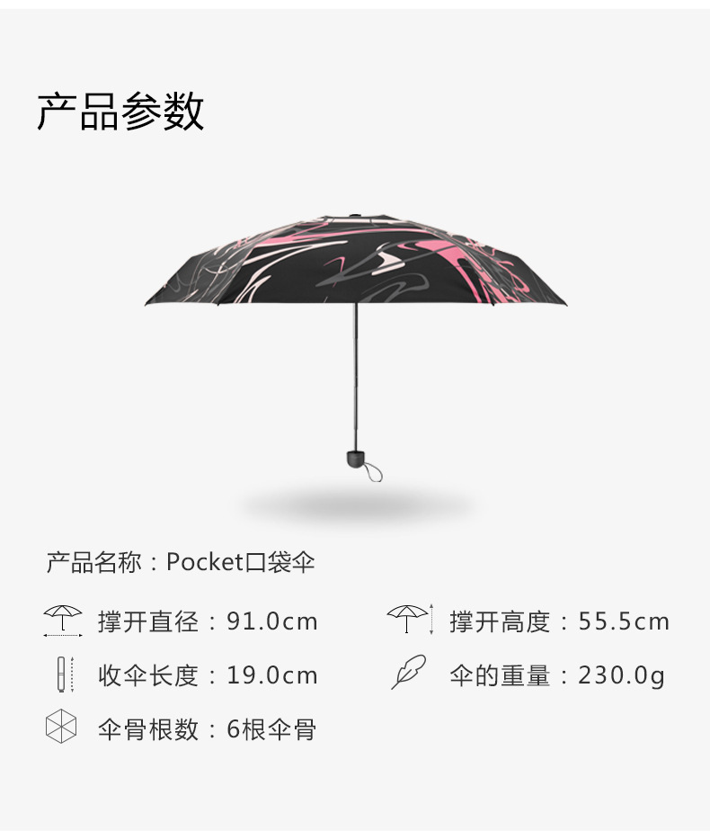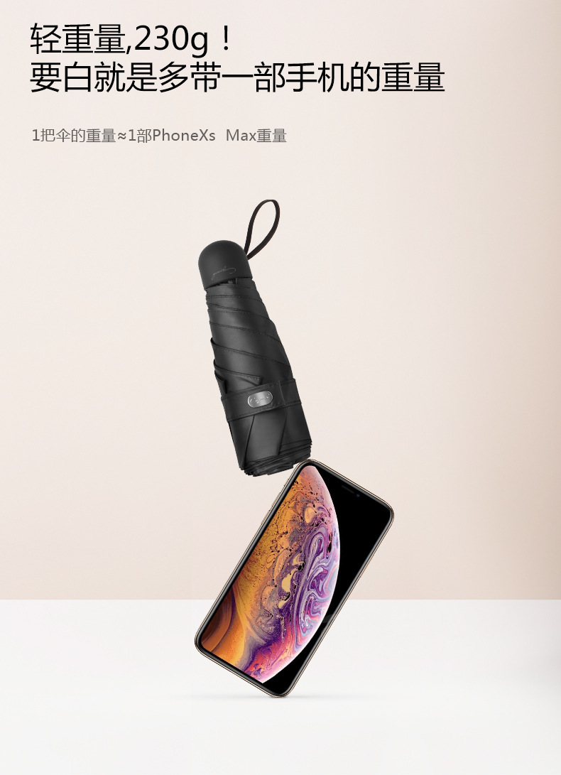 小编推荐理由: 小:伞收起仅19cm,如手掌大小; 轻:伞重量仅230g,如iPhone Xs Max; 防晒:紫外线的阻隔率达99.99%,UPF50+,完全0透光,晴雨两用; 抗风:实验证明可抗8~9级大风; 设计感:原蕉下设计师设计,视觉感强。 |