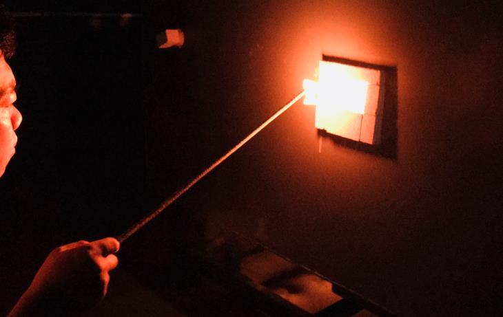 为了保证每款杯子釉色的烧成,依然延用传统的火照插饼法,每隔一段时间,就要勾出火照,观察窑内温度,判断瓷器成色。