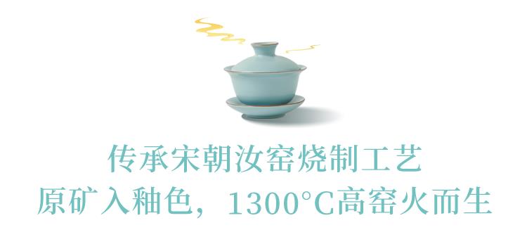 这款天青色汝瓷盖碗,素雅静美,敲之清脆似铃,触之温凉如玉。