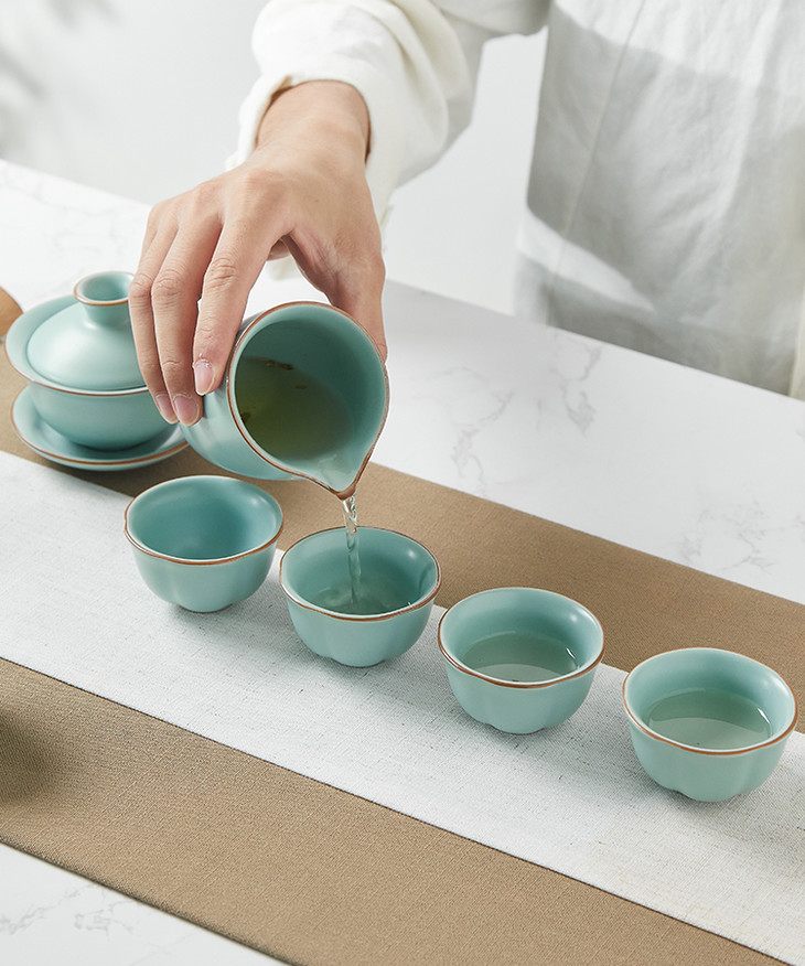 这么一大套的天青色汝瓷茶器,不过129元即可入手,带一套给家中长辈、或者送给同事,性价比高,但却是很显心意的礼物。
