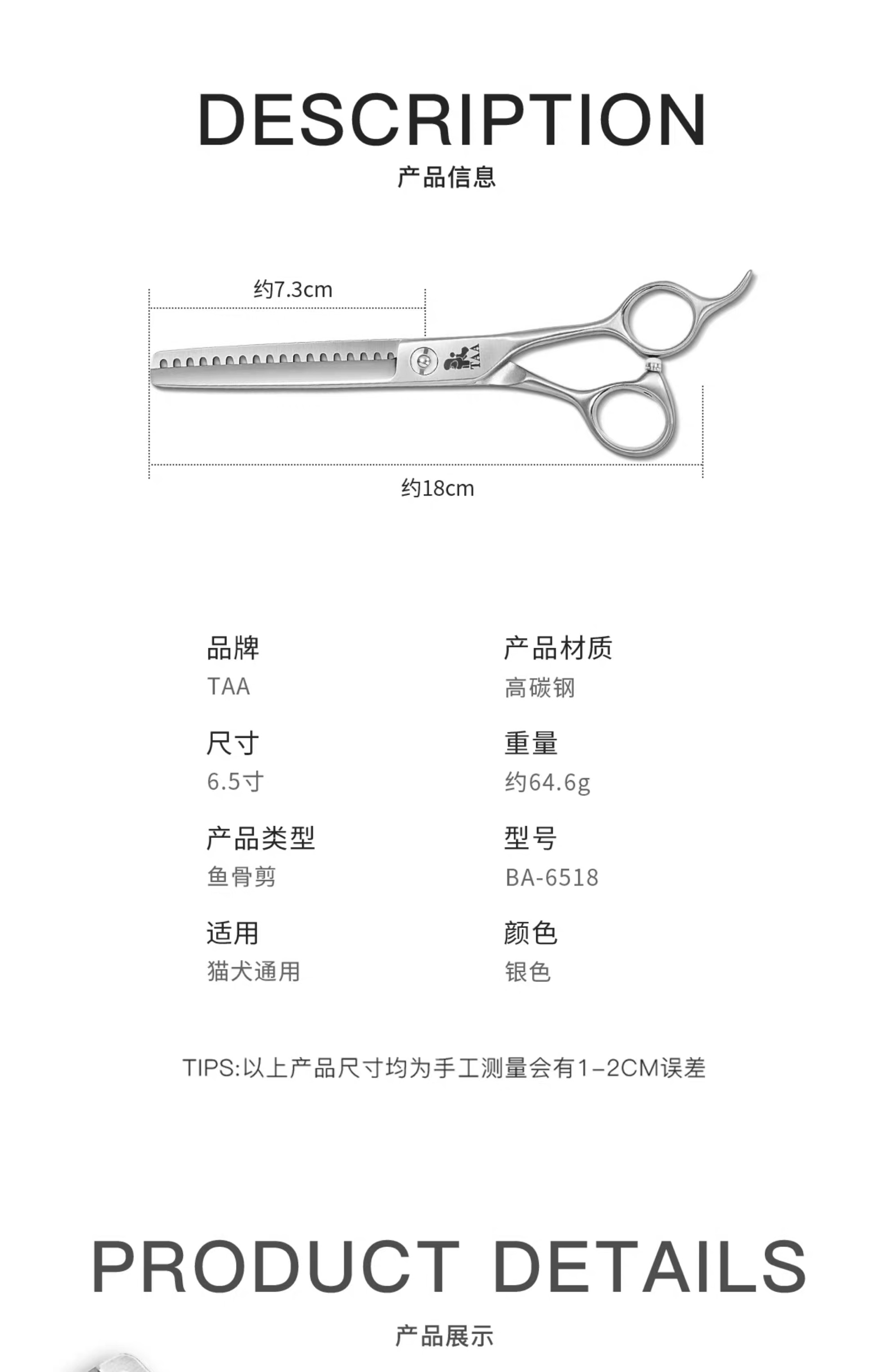 TAA它它宠物美容6.5寸鱼骨剪BA-6518开型打薄宠物门店泰迪比熊
