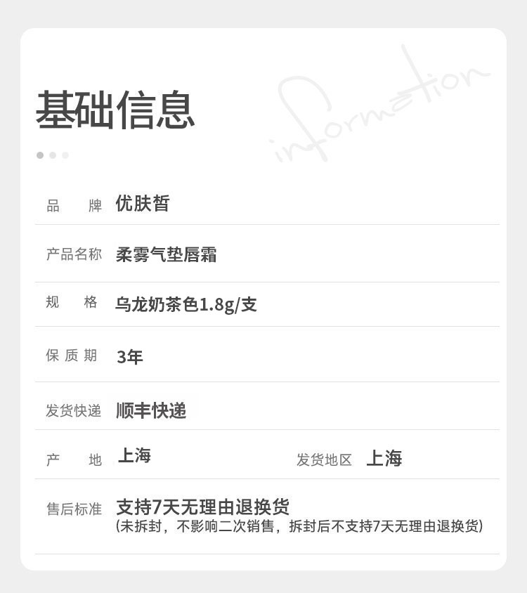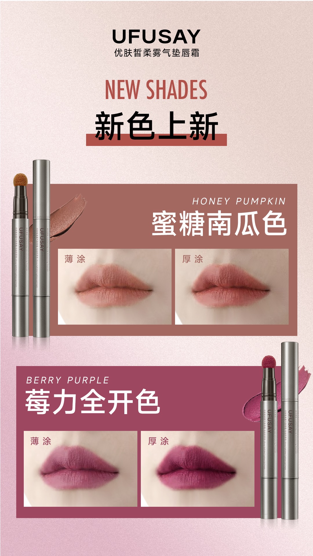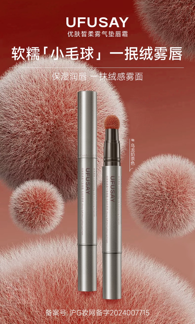 【限尚粉内购】下单2支+0.1元换购1支,到手3支!柔雾气垫唇霜 雾面口红 优肤皙UFUSAY 护肤品牌 乌龙奶茶色“小毛头“口红