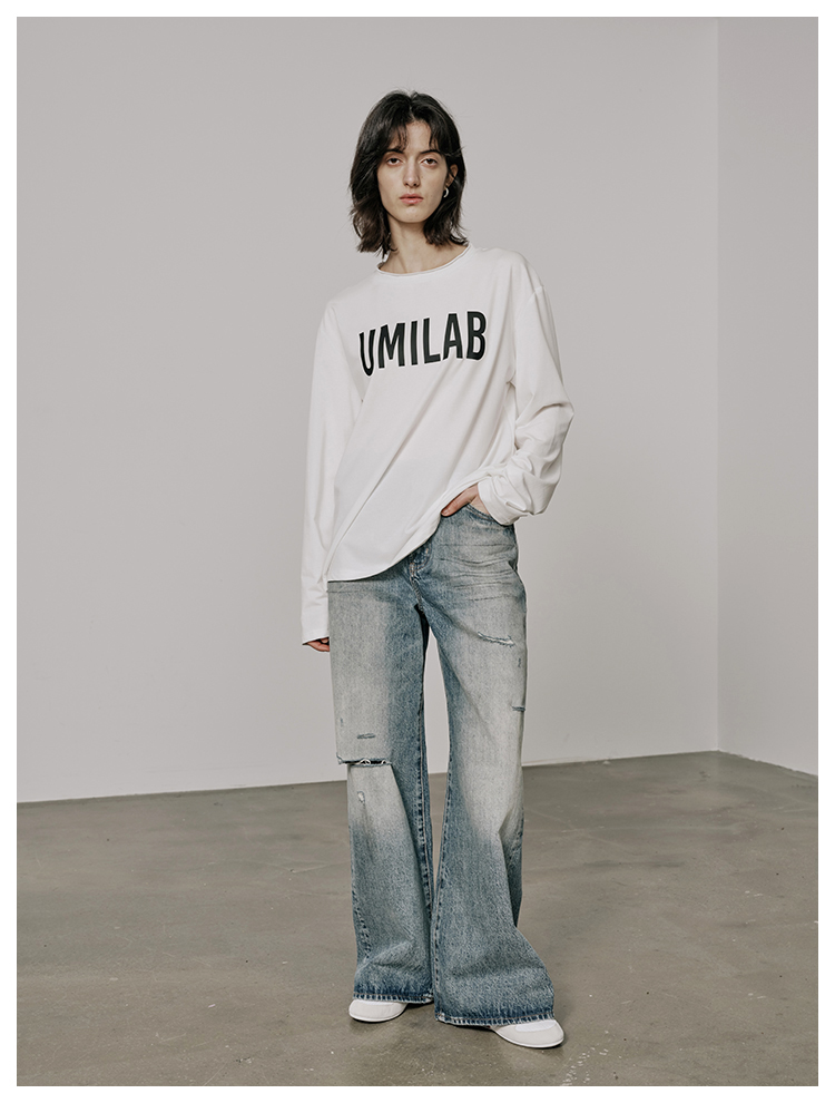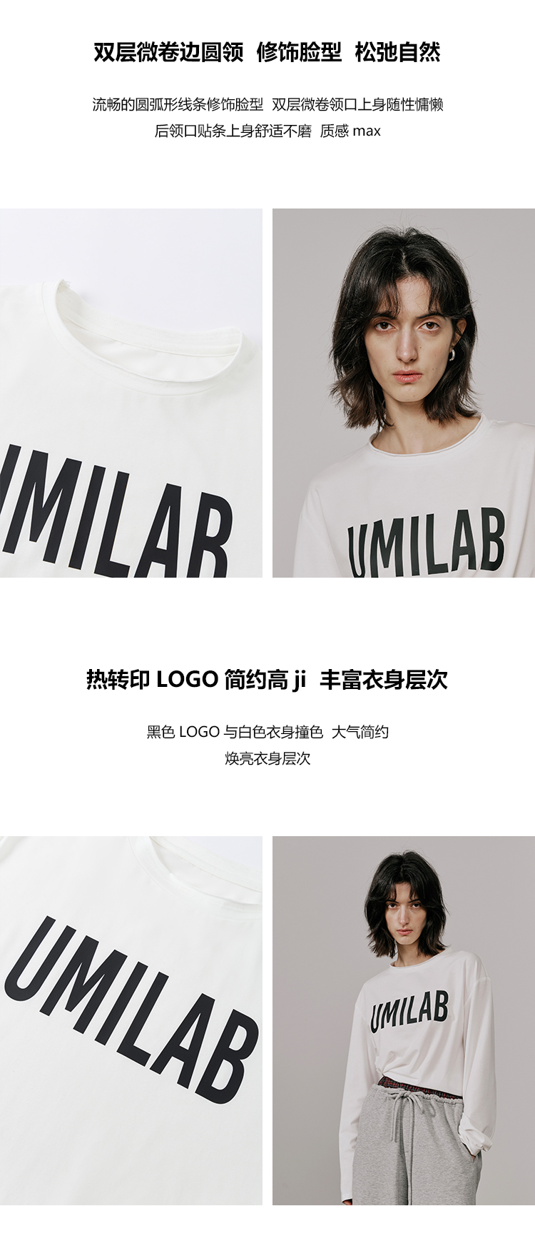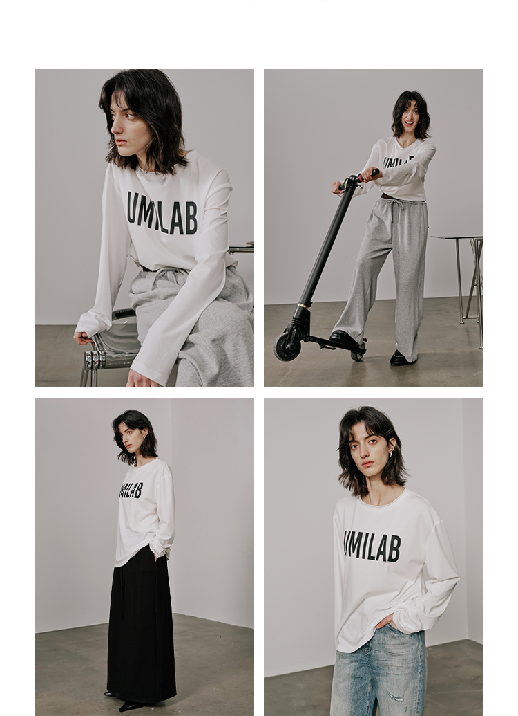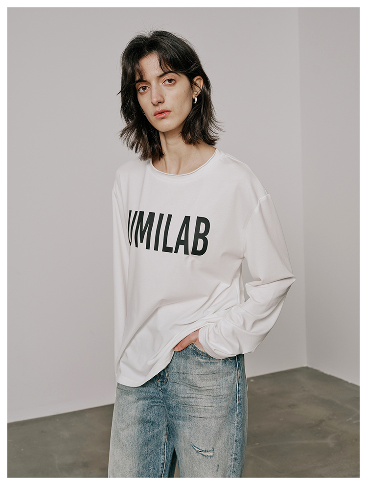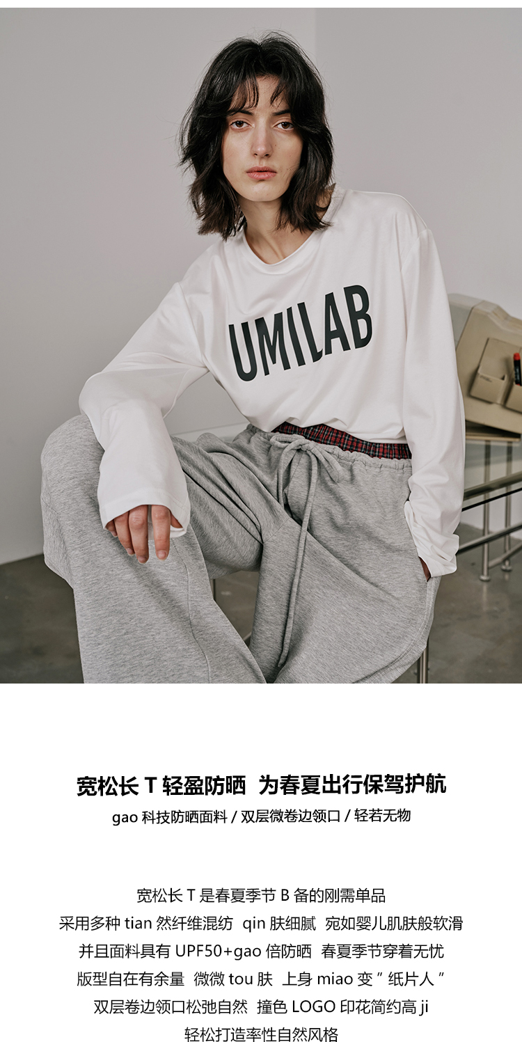 UMILAB【春漾】高科技防晒面料软滑亲肤毛边圆领宽松长袖T恤T720M