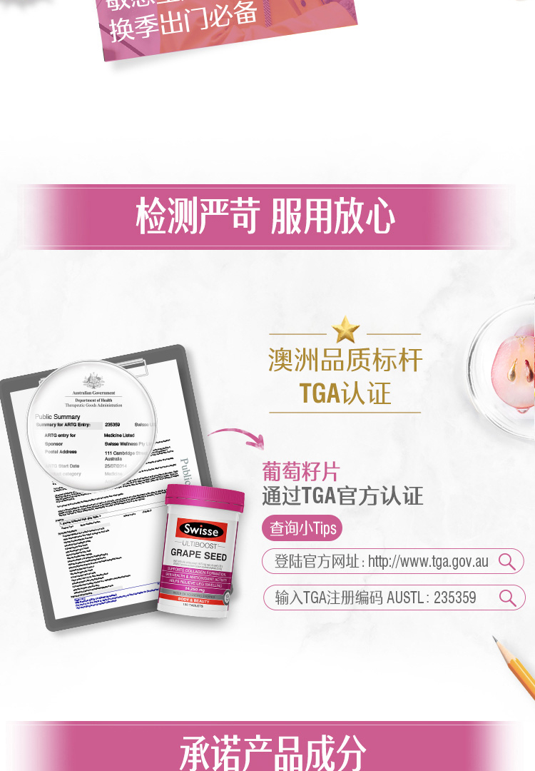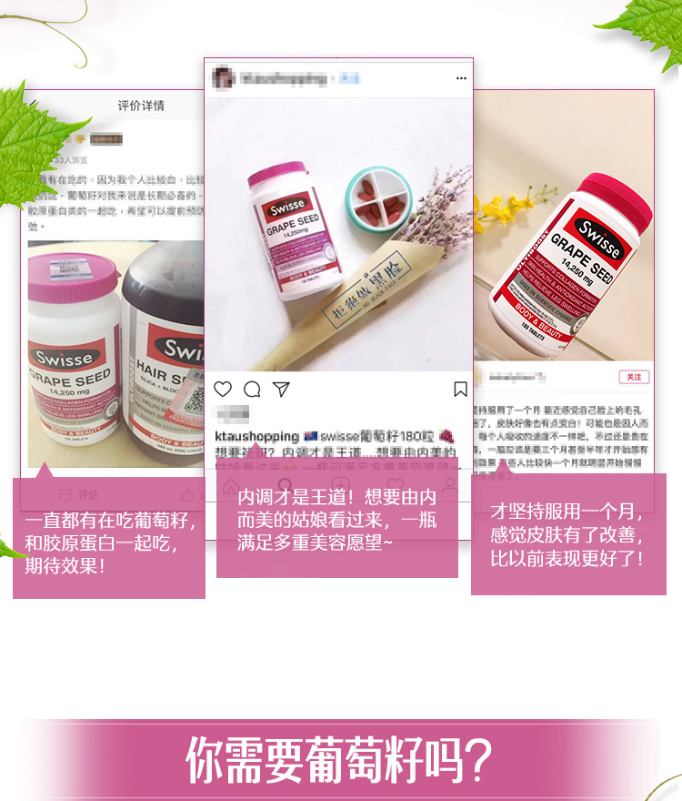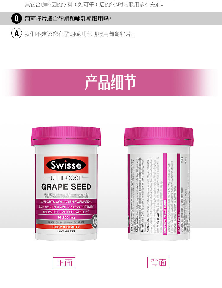 澳洲Swisse 斯维诗葡萄籽片高浓度原花青素维生素保健品180片/瓶