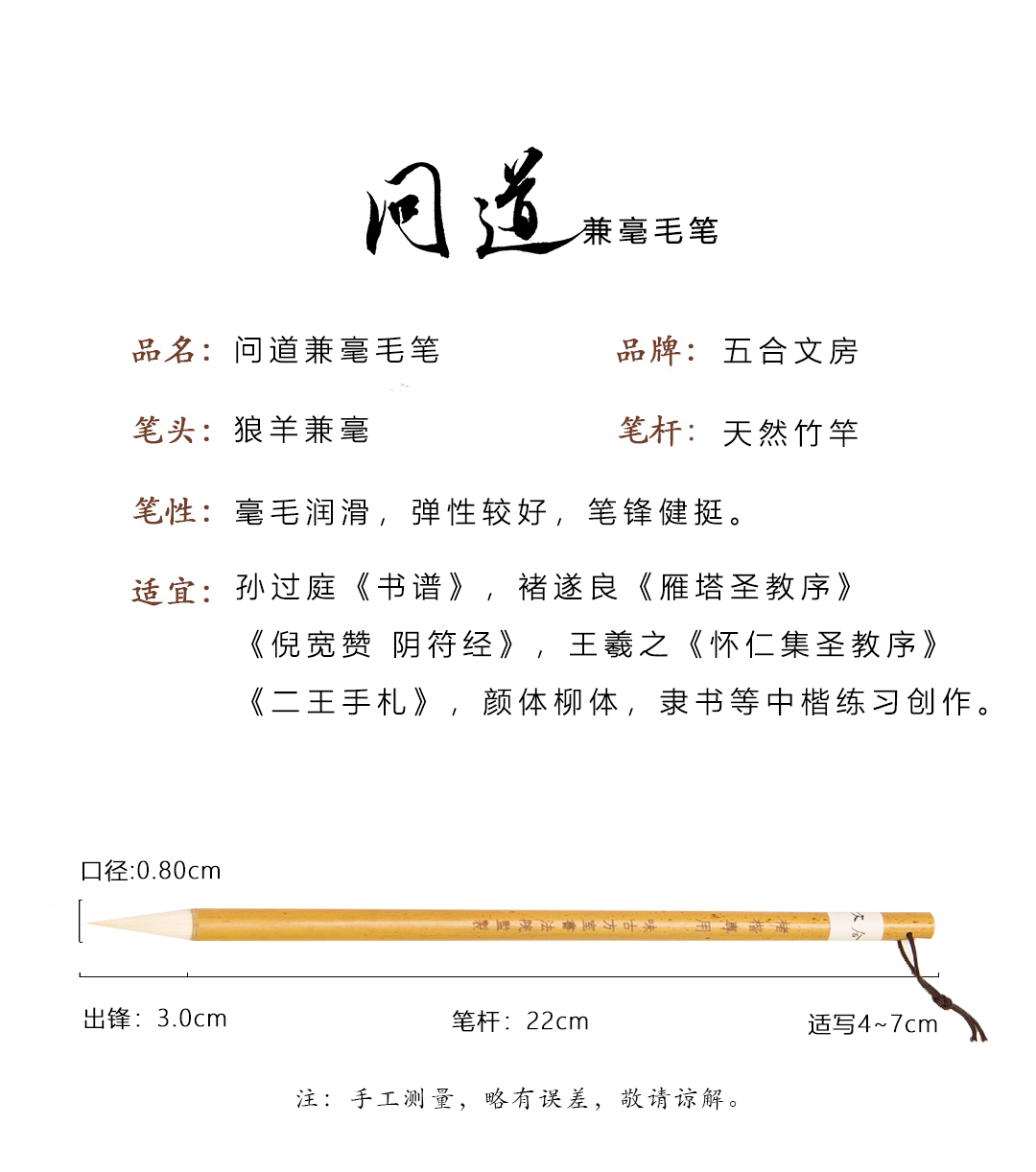 问道 丨狼羊兼毫 出锋3.0cm 中号初学书法推荐兼毫毛笔行楷欧体通用