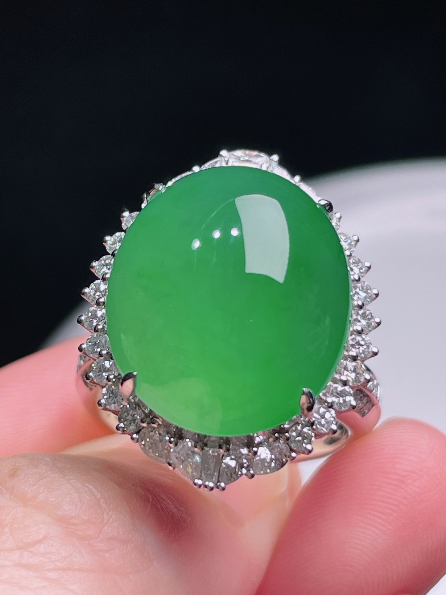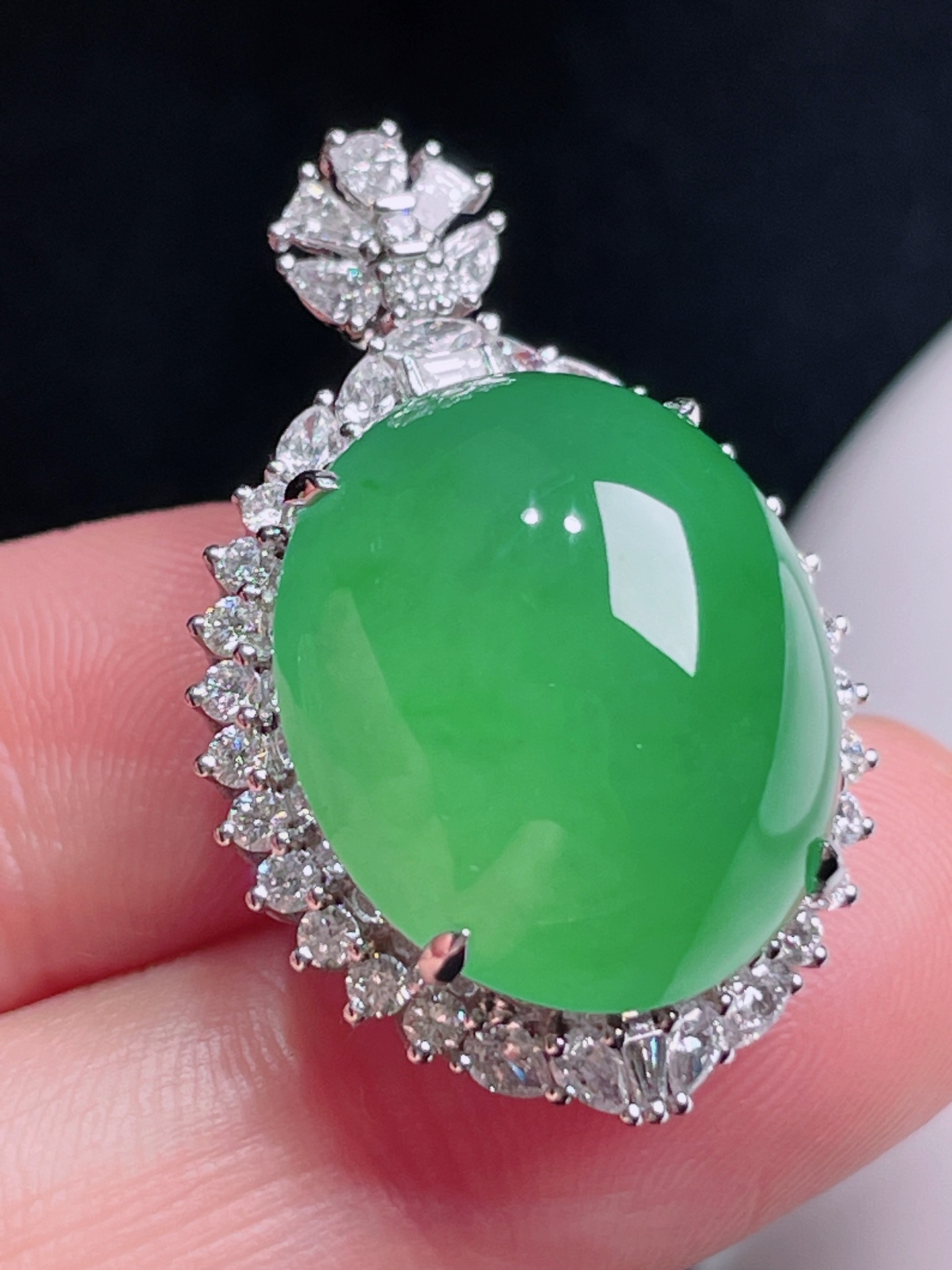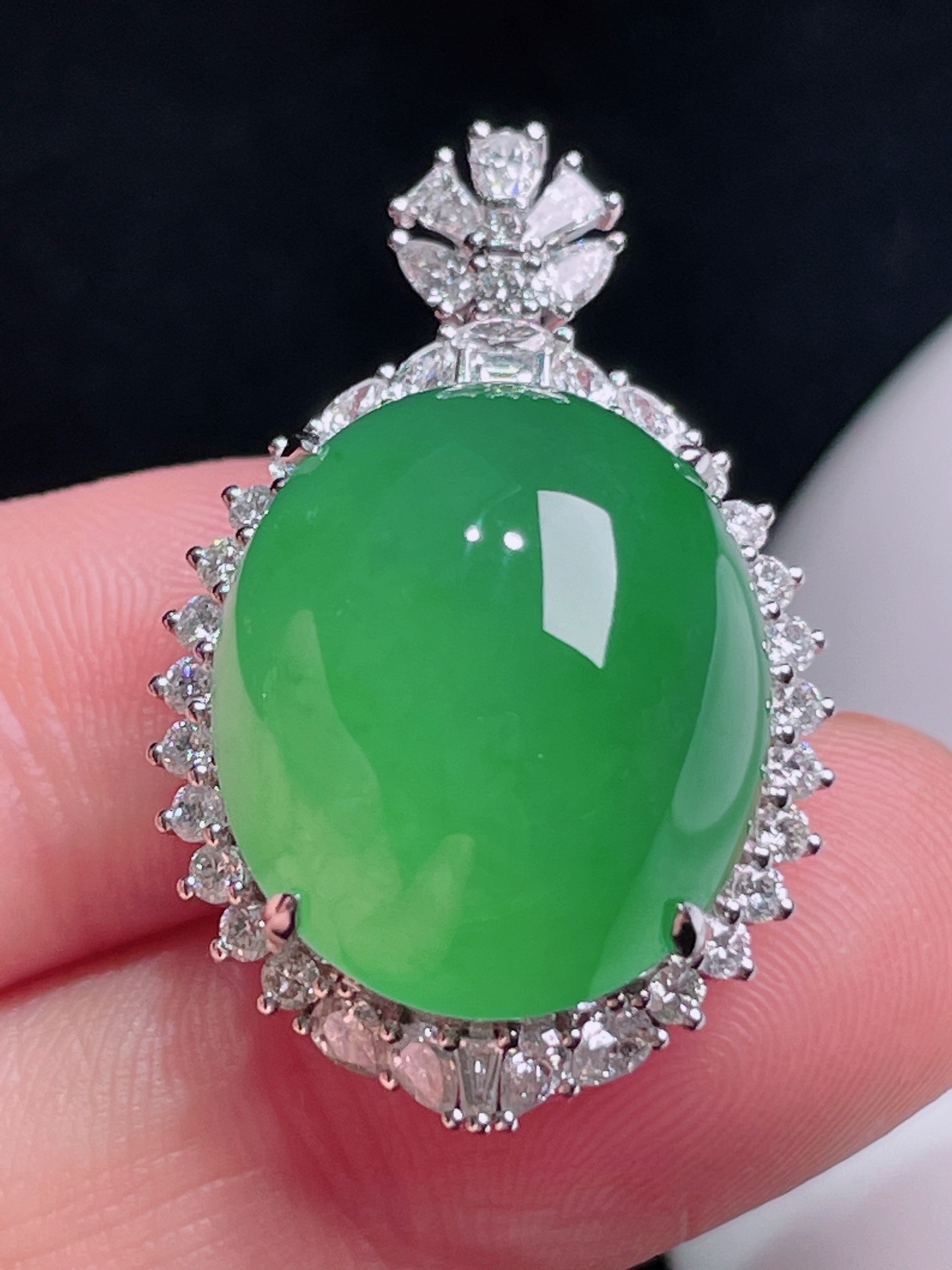 497147 冰阳绿蛋面戒指/吊坠两用款 细腻精美,高端大气,一款两用,实用性高 裸石尺寸:17.5/15/16.5mm(含金厚) 整体尺寸:23/18.6/16.5mm 超值价💰44000