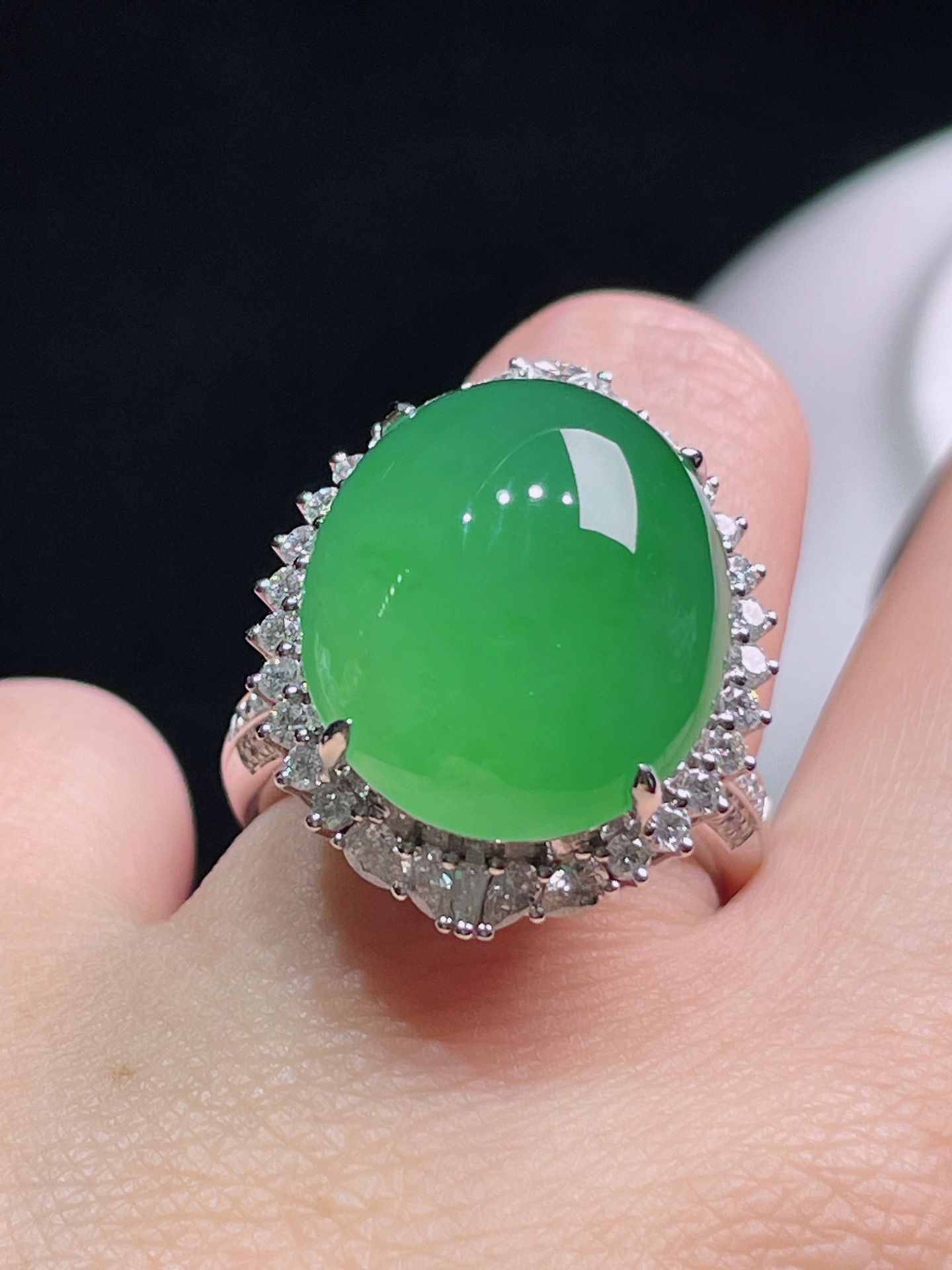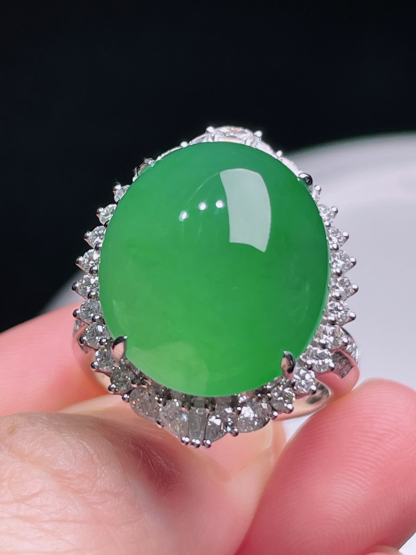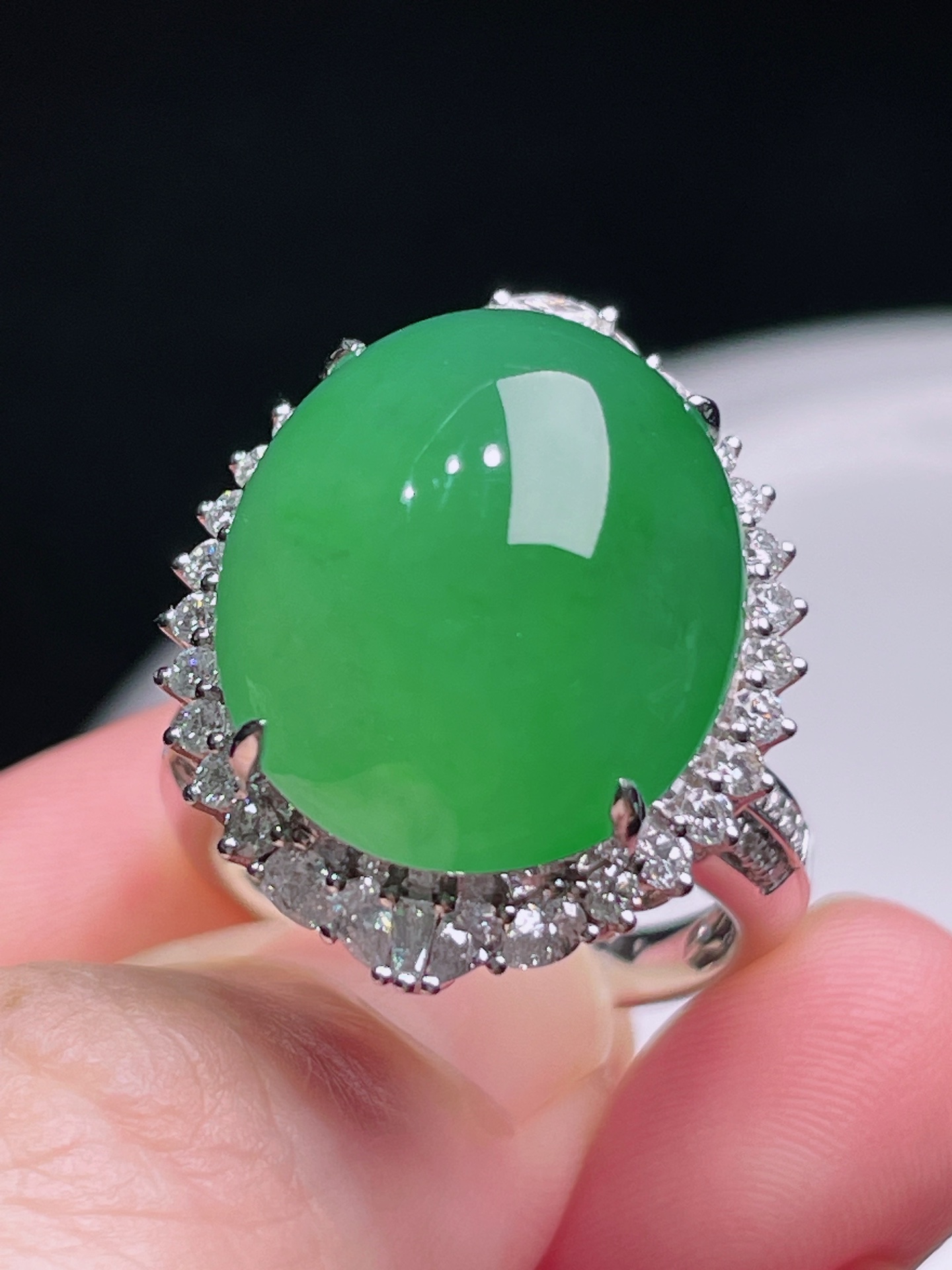 497147 冰阳绿蛋面戒指/吊坠两用款 细腻精美,高端大气,一款两用,实用性高 裸石尺寸:17.5/15/16.5mm(含金厚) 整体尺寸:23/18.6/16.5mm 超值价💰44000
