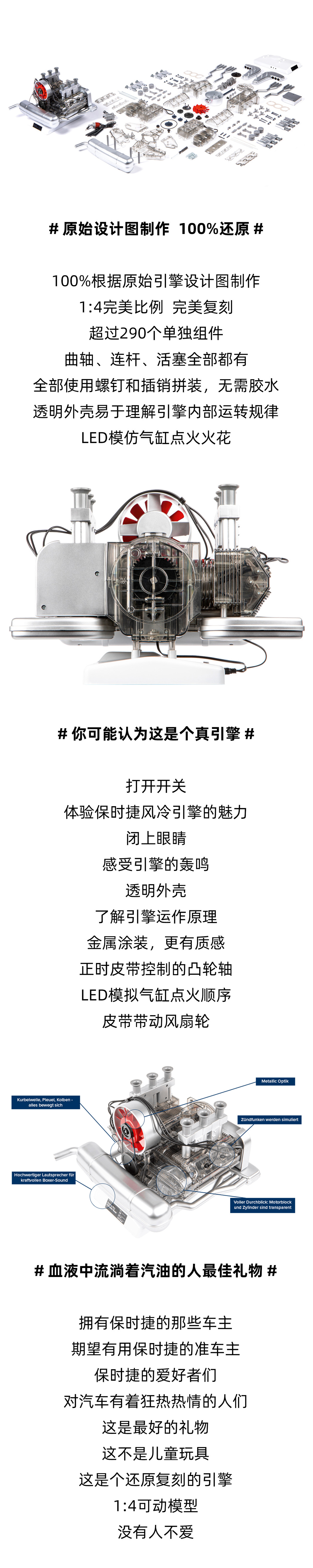 PORSCHE 保时捷 911风冷引擎拼装模型,1:4复刻还原,保时捷博物馆官方出品 | 新年好礼,顺丰包邮