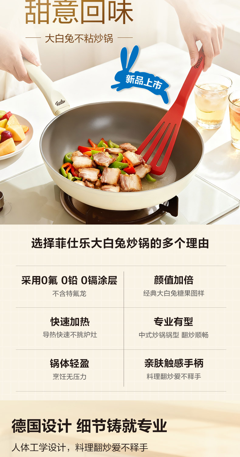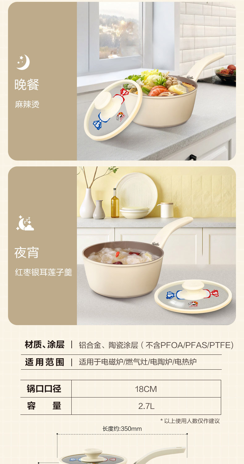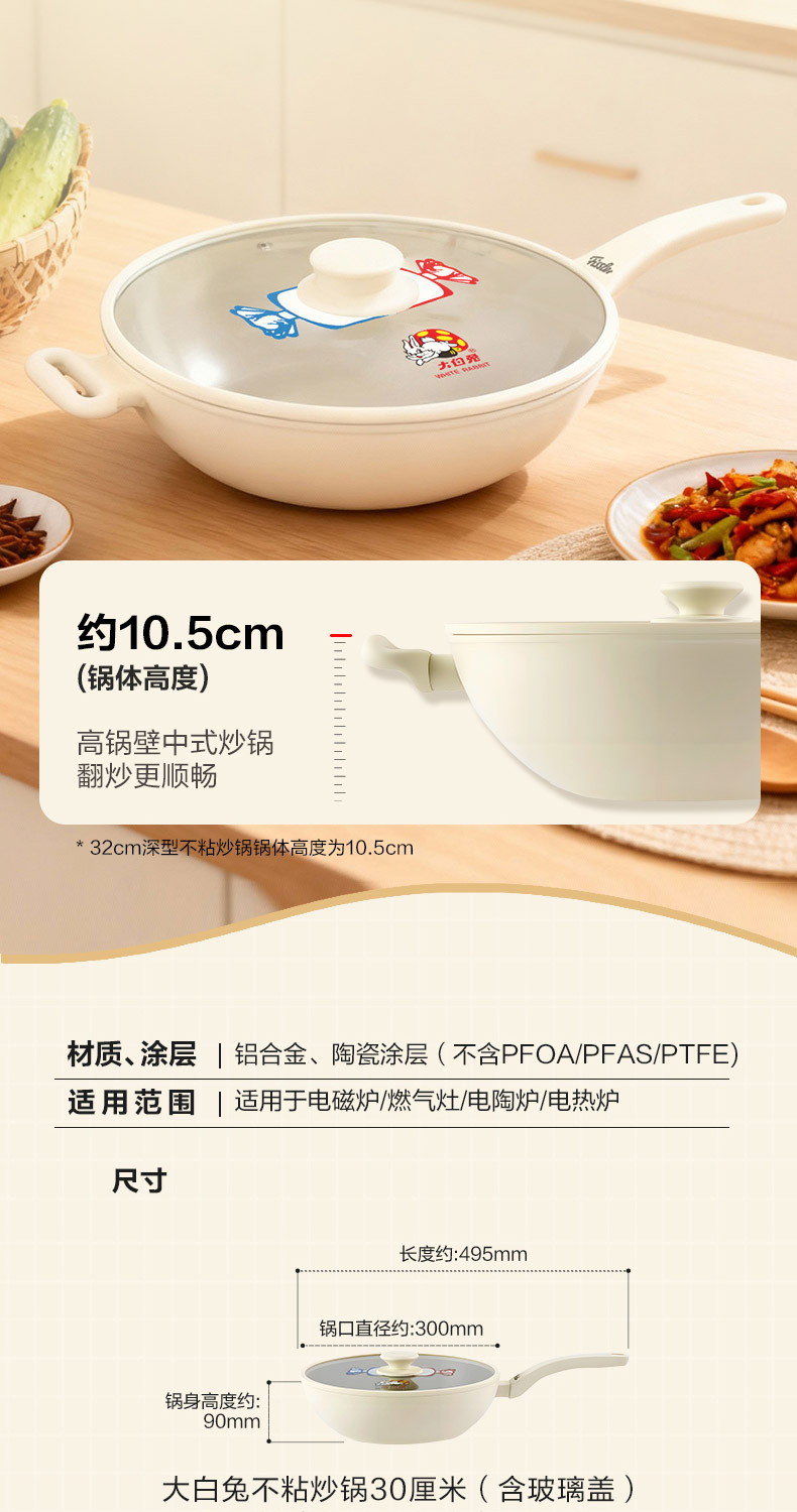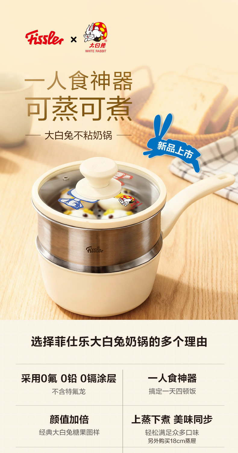 【限时特惠】大白兔不粘煎炒奶锅三件组-赠乐彩五件套