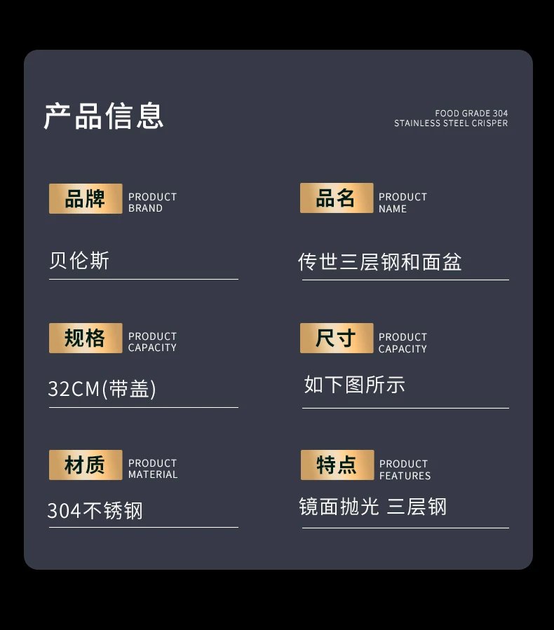 【品名】贝伦斯高端不锈钢厨具系列 【发货地】:广东潮州 【发货时效】:5天(预售商品除外) 【发货快递】 【售后标准】:支持7天无理由退换货,保证产品和包装完好,不影响二次销售。非质量问题退换货需要买家自行承担寄回的运费。质量问题请48小时内提供产品和快递面单合照联系客服处