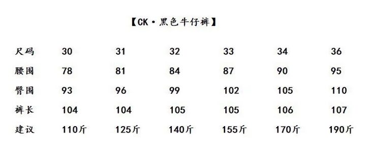 尺码:30 31 32 33 34 36