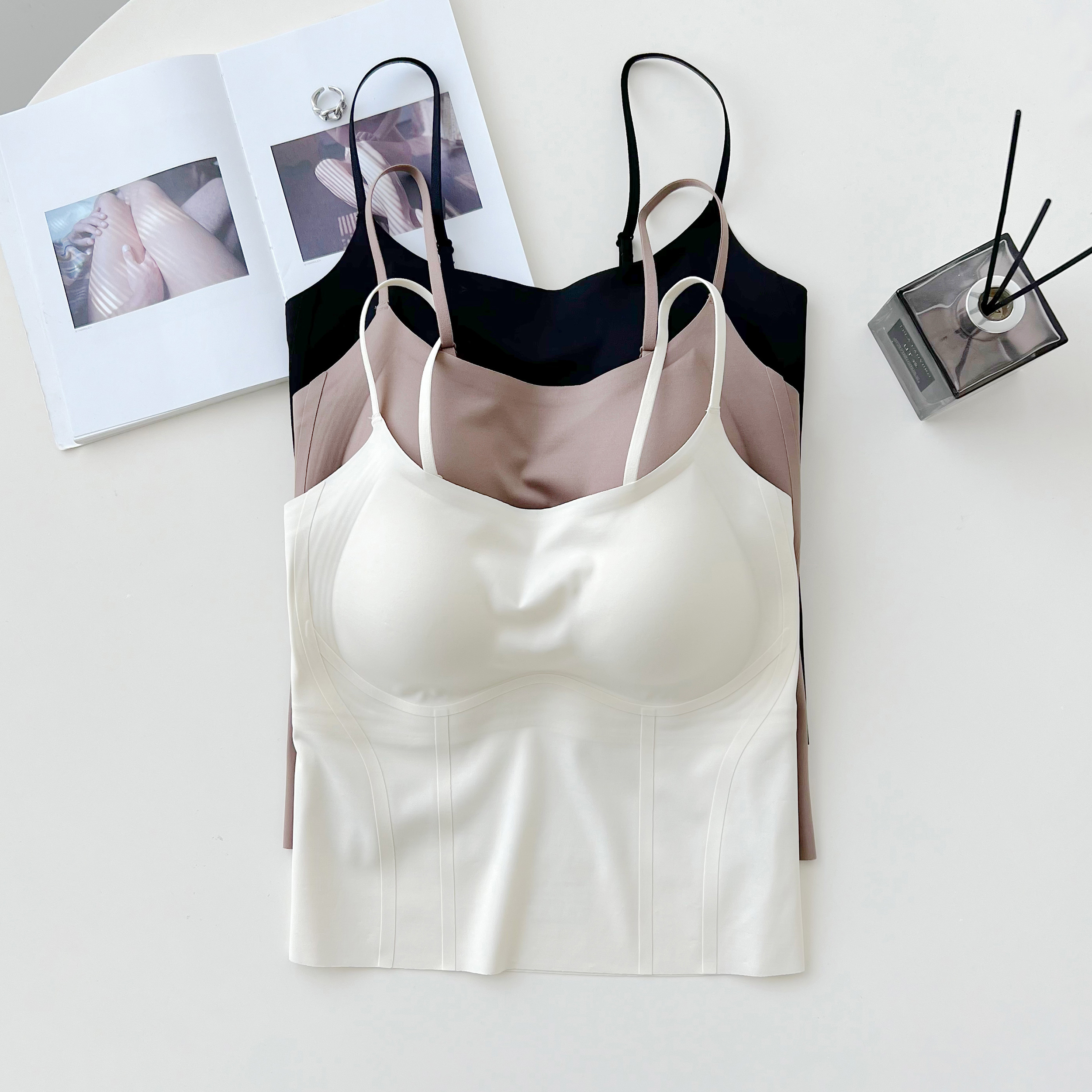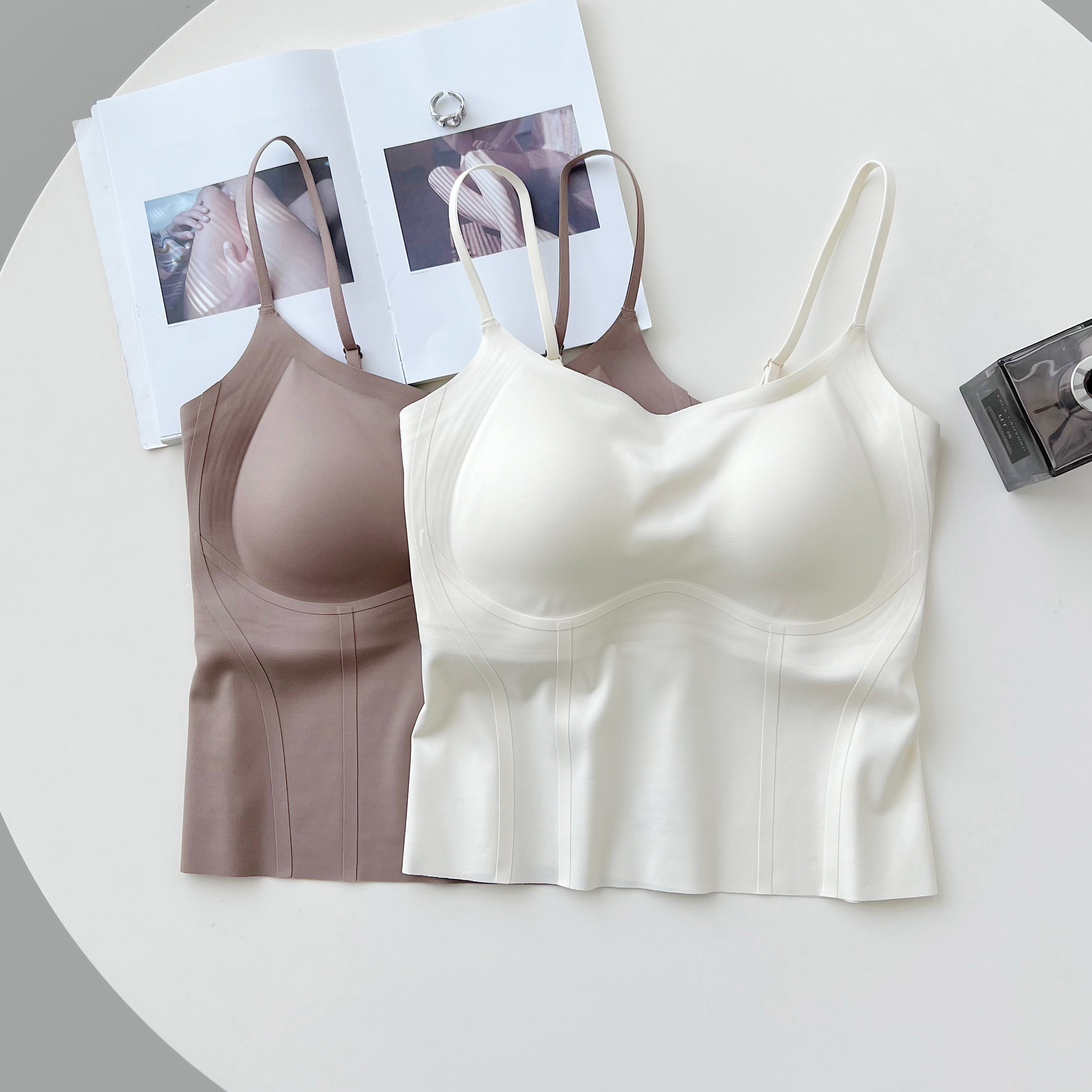 老米优品/ 满满心动~❤《无痕一体半固定杯外穿吊带背心》果冻条软支撑,免文胸!可单穿可外搭 时尚度直接拉满 !DD240524B