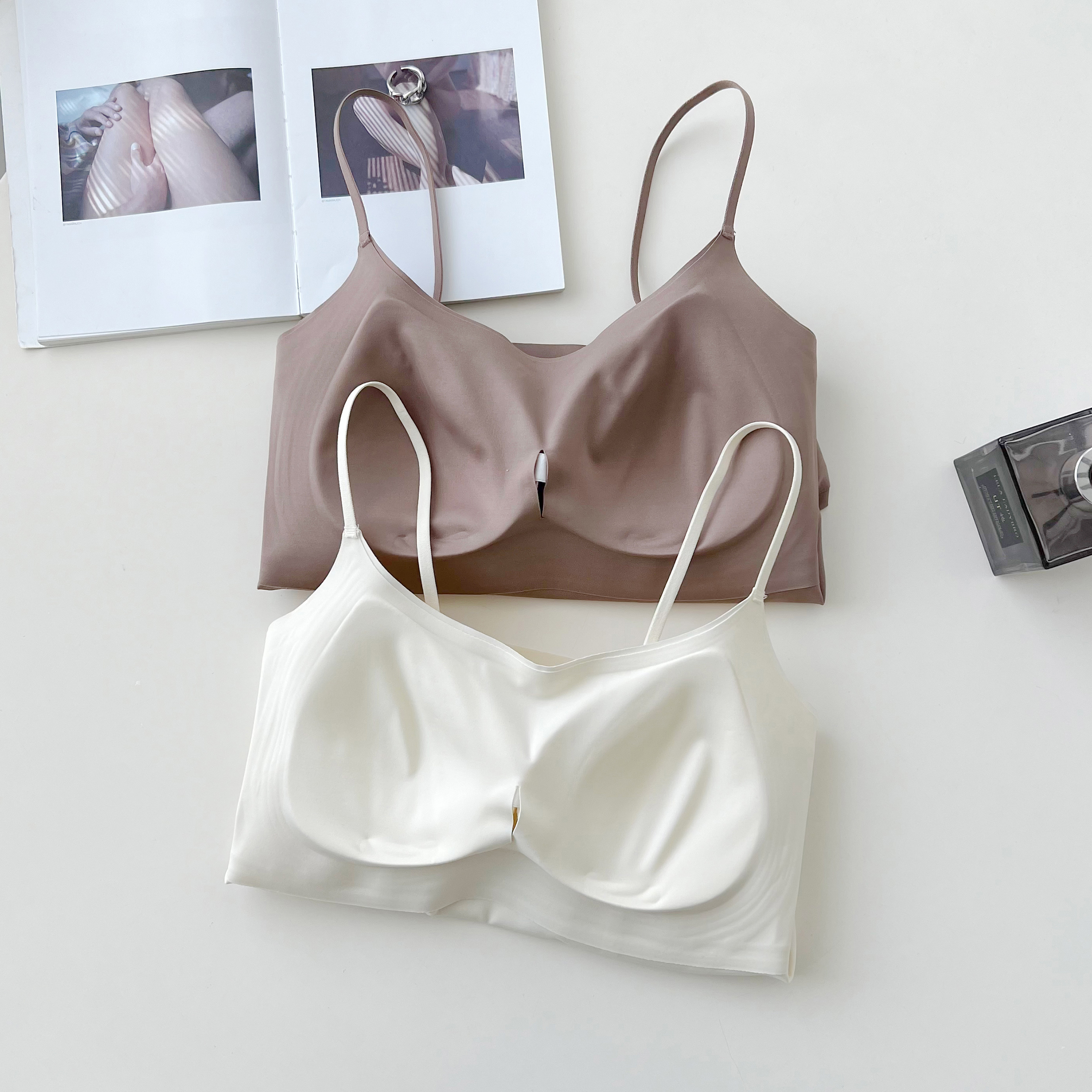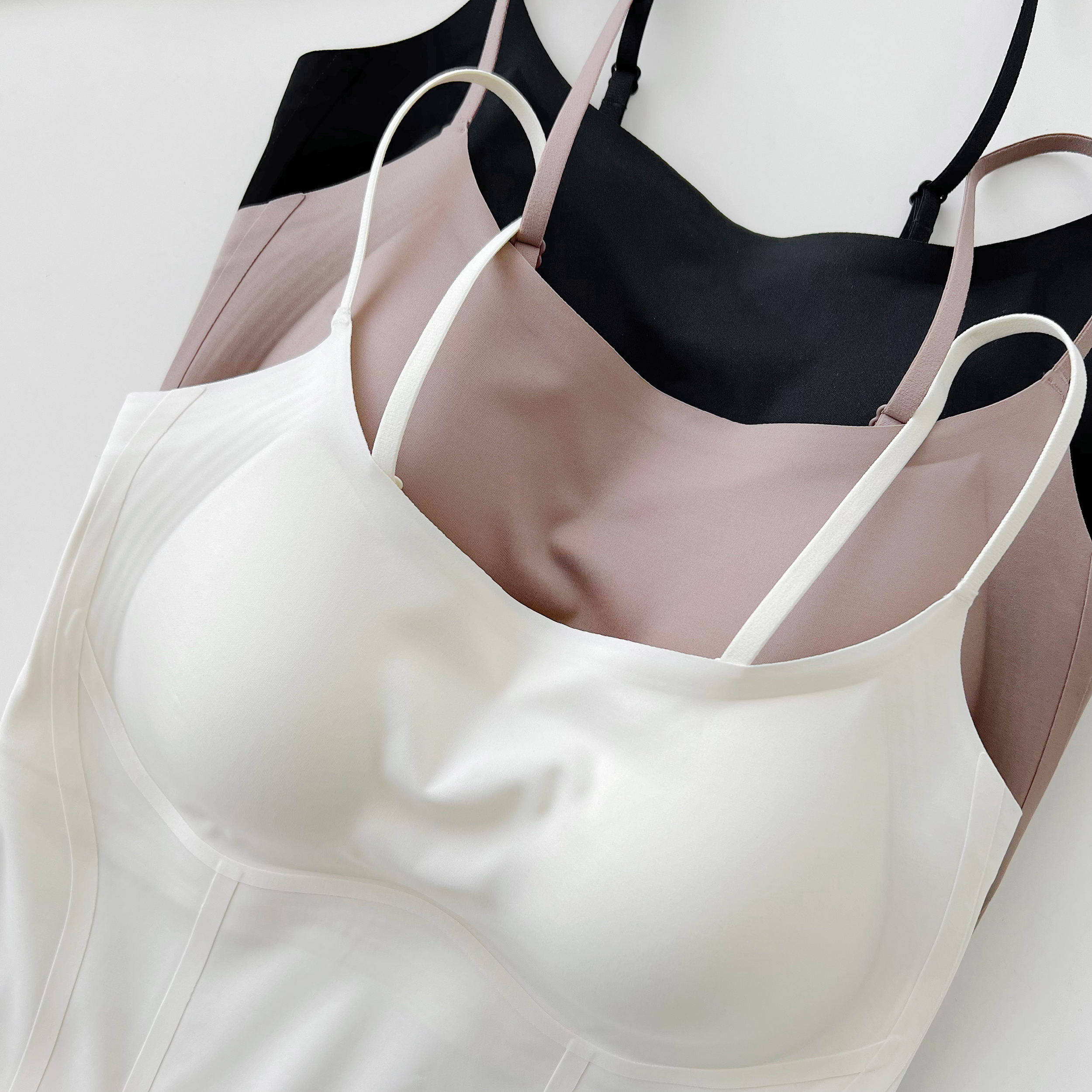 1.果冻胶软支撑二合一吊带文胸,立体杯型包裹胸部舒适有型圆润包满