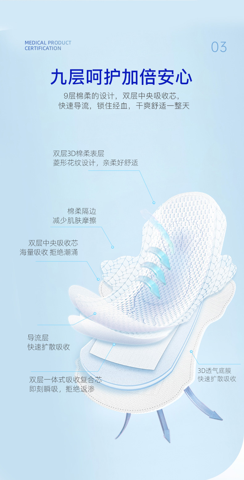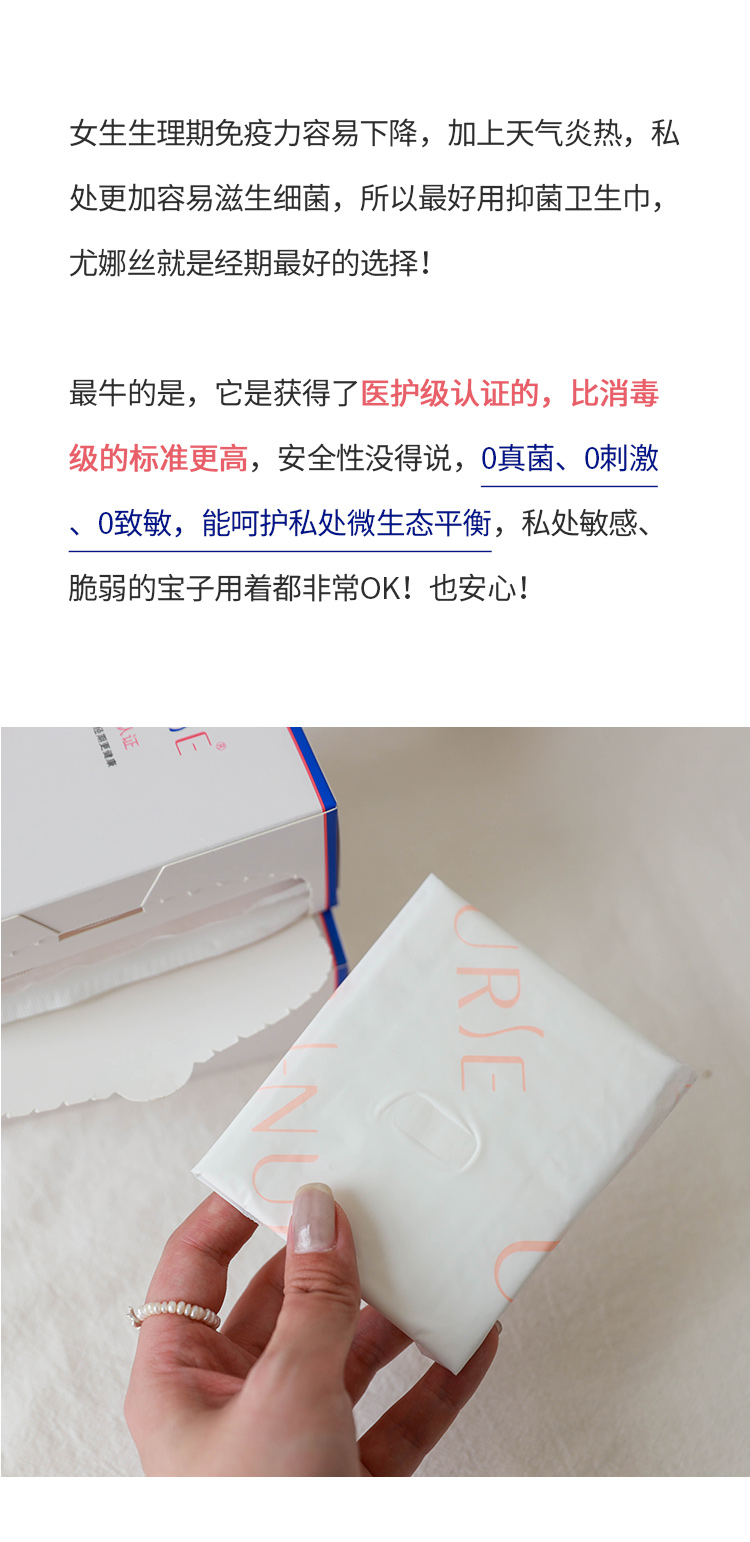 【3天左右/重庆发】尤娜丝医护级抑菌卫生巾,超多妇科医生都在推荐使用!双层3D棉柔表层+中央吸收芯+3D透气底膜,瞬间吸收不回渗,保持私处干爽透气,高达99%抑菌表层,薄至0.1cm的裸感体验!