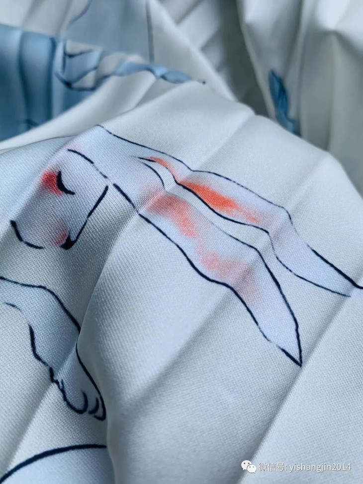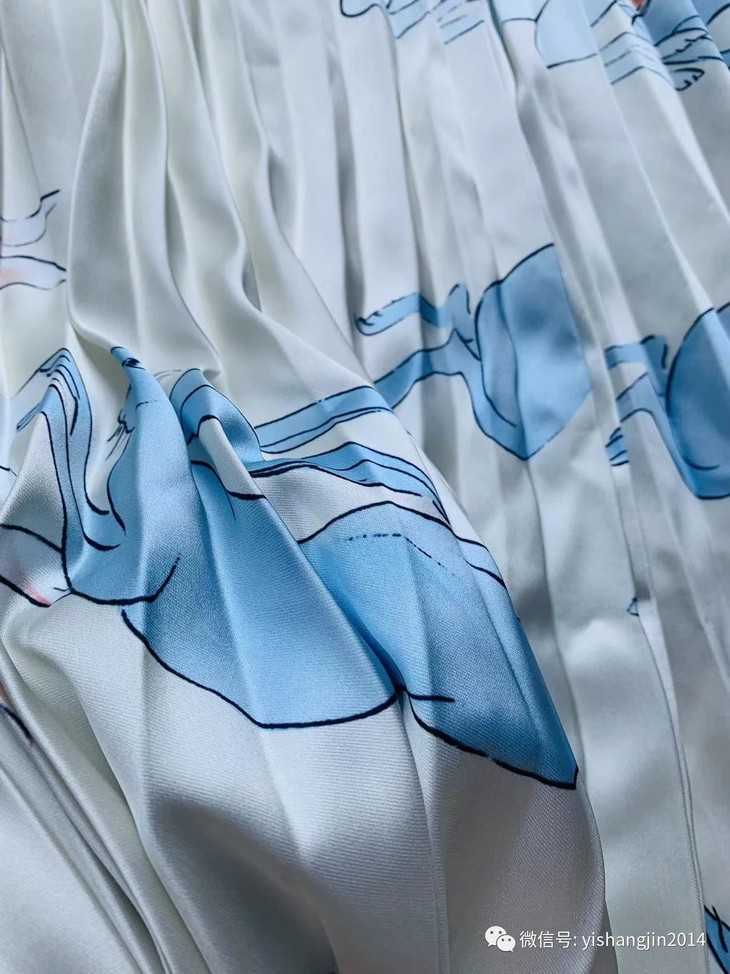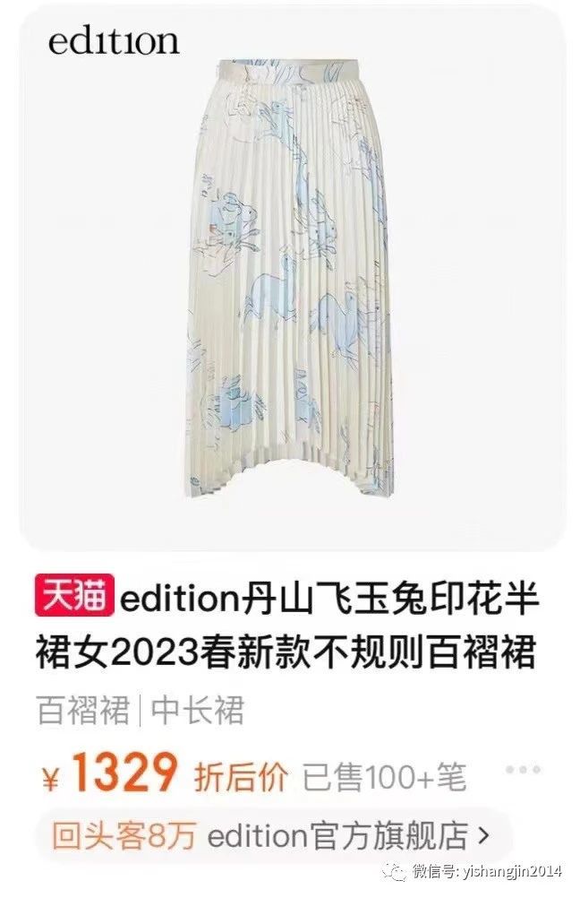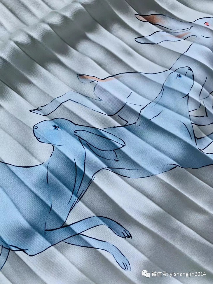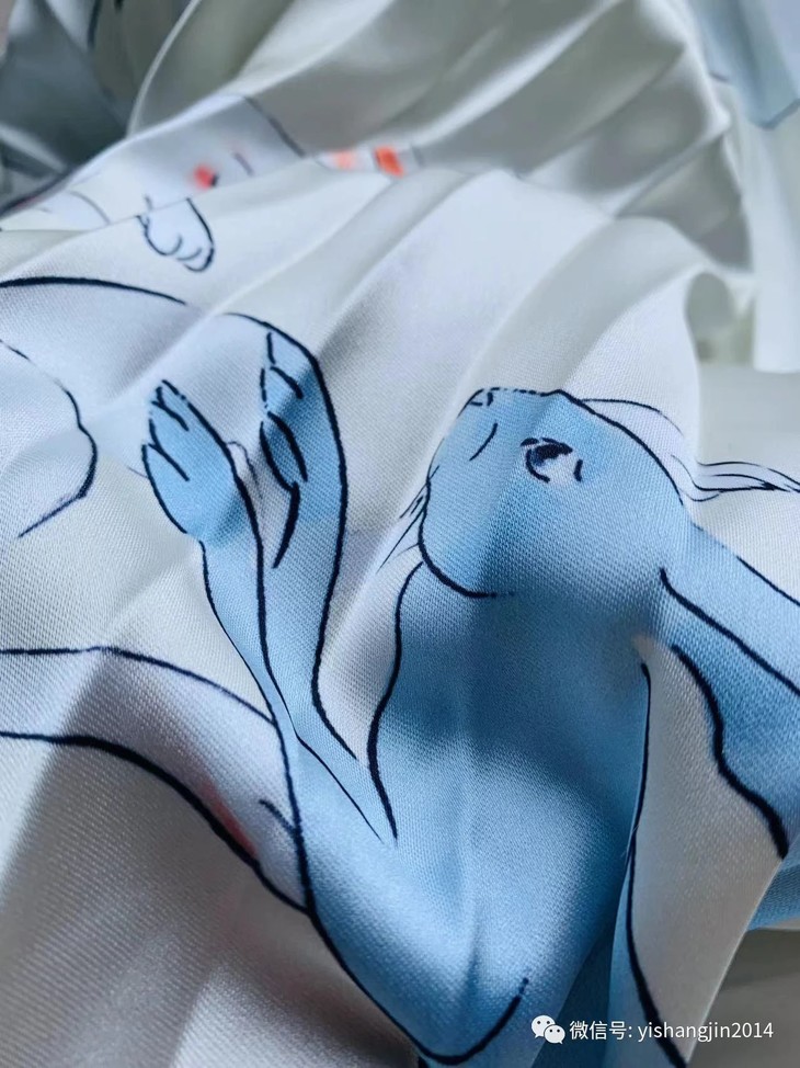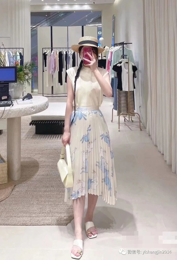 23夏季新款,专柜1899元,这款裙子最妙的是印花,灵感出自宋代著名词人谢薖的“坐待丹山飞玉兔”,活灵活现的“丹山玉兔”印花图案,中西合璧的设计元素,新中国风的feeling,令人十分惊喜。
