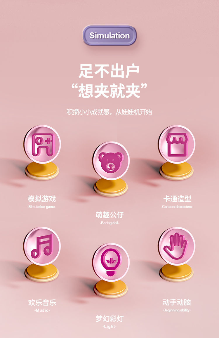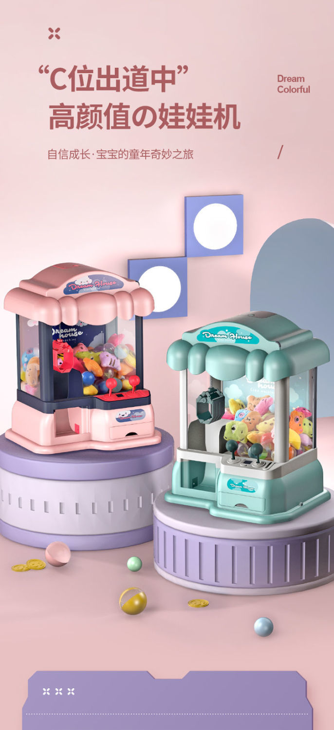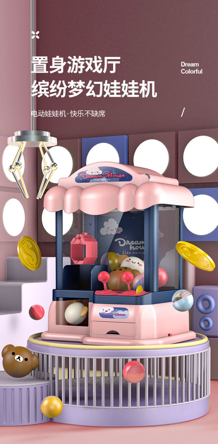 儿童抓娃娃机迷你夹扭蛋公仔糖果吊机小型家用投币儿童玩具男女孩国庆出游