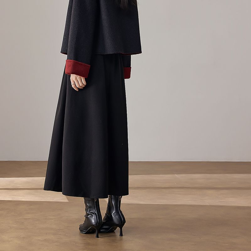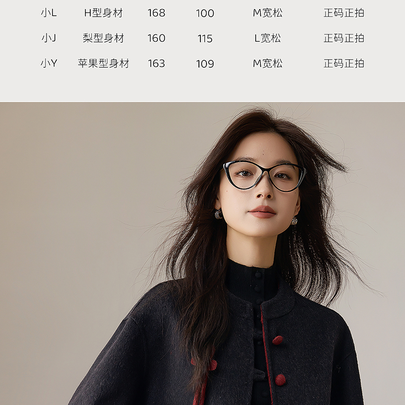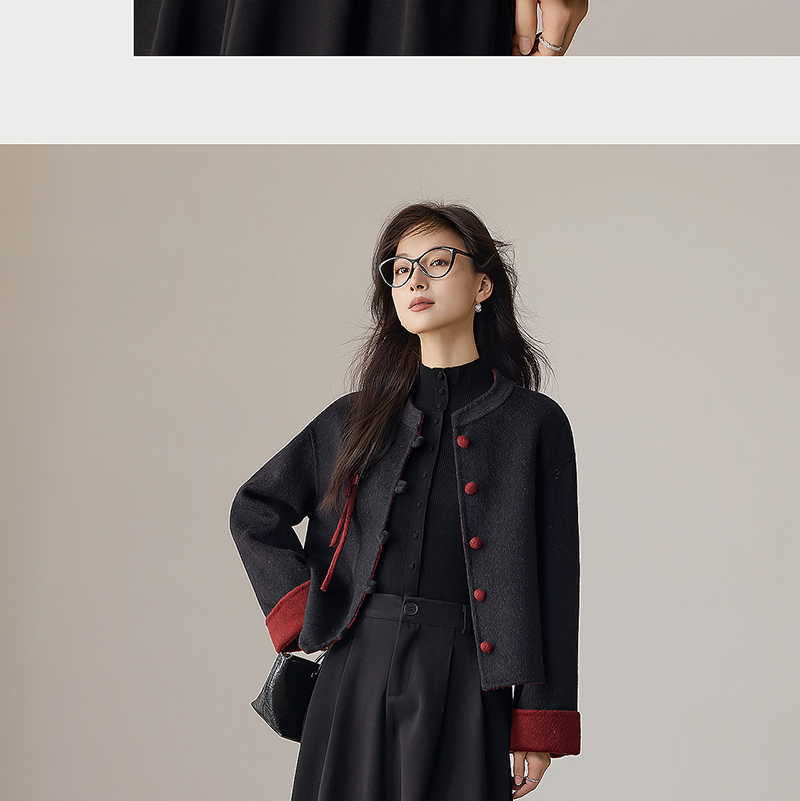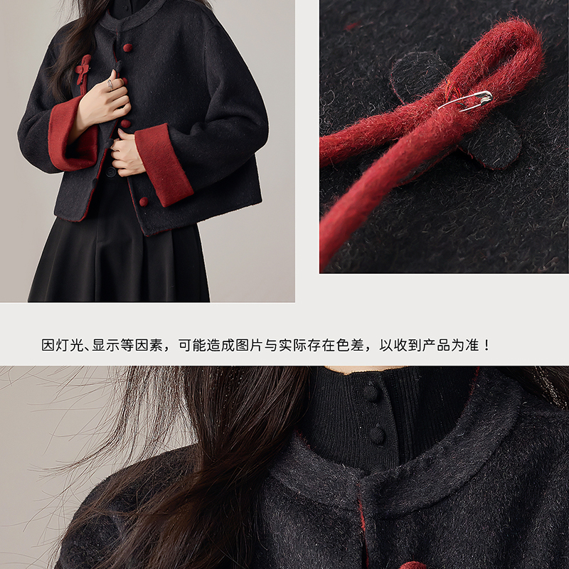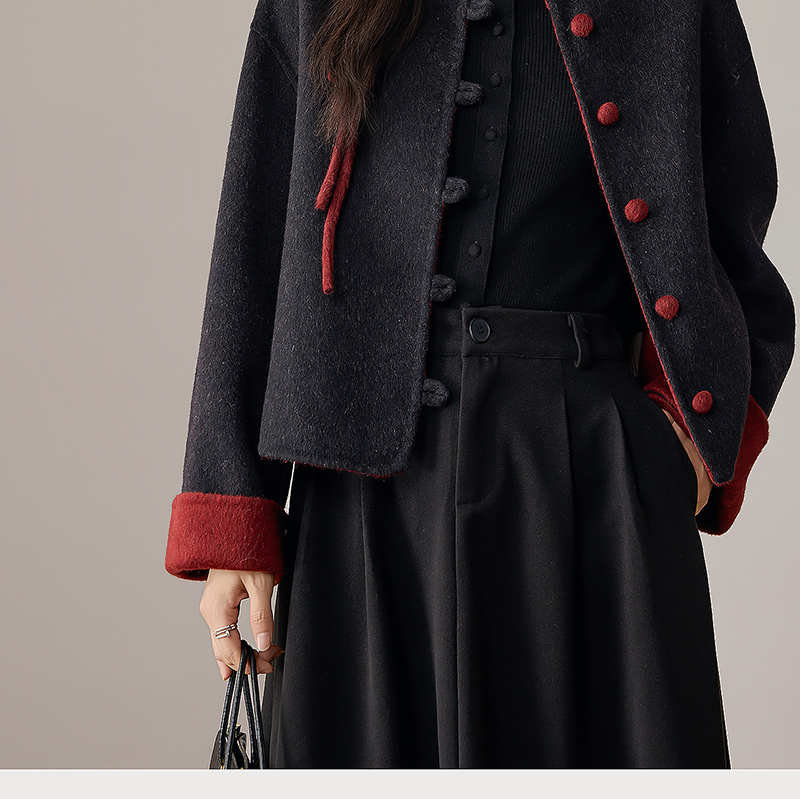 VICTORIA&VERA 冬季【墨韵红笺】撞色盘扣羊毛短外套 | 深灰拼酒红国风设计 日常通勤复古感上衣