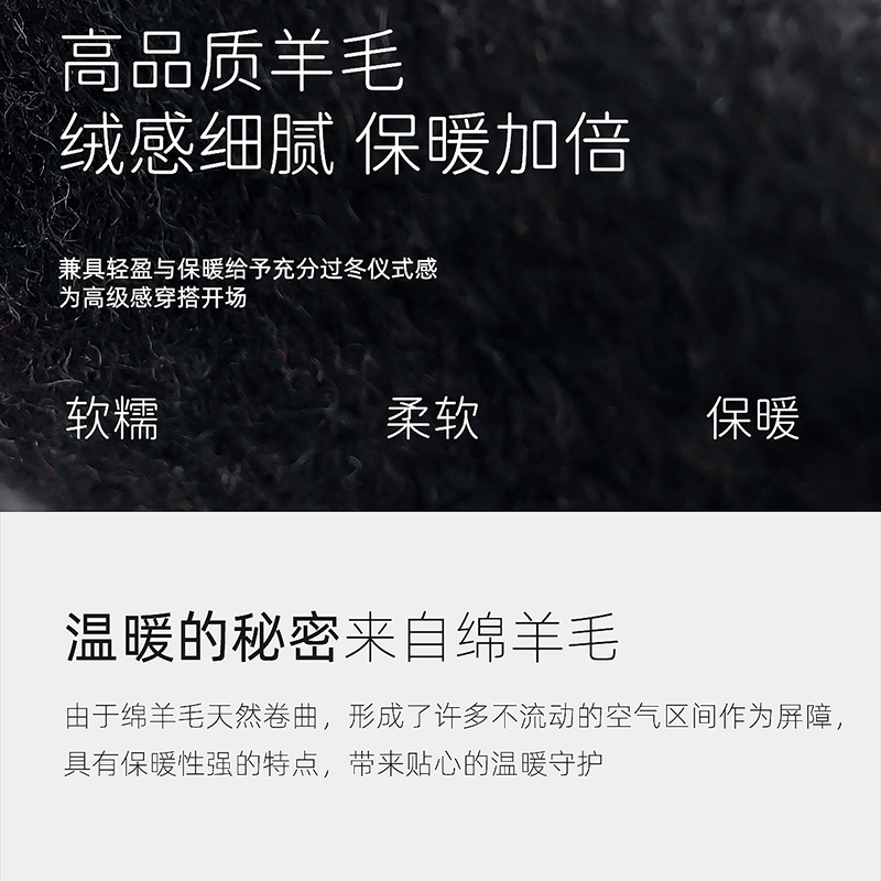 成分:66.2%绵羊毛 21.6%聚酯纤维 6.9%其他纤维 5.3%腈纶(连接线除外)