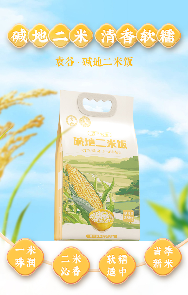【走娃官方指定补寄品】袁谷碱地二米饭2.5kg*2盘锦圆粒米五常玉米糁二米饭软糯清香10斤装赠送6瓶260ml稻米油到手8件