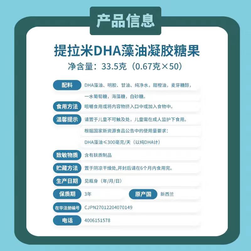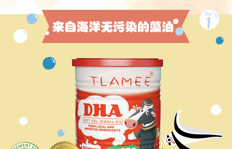Tlamee提拉米DHA深海藻油胶囊life`s新西兰儿童孕产妇补脑150mg