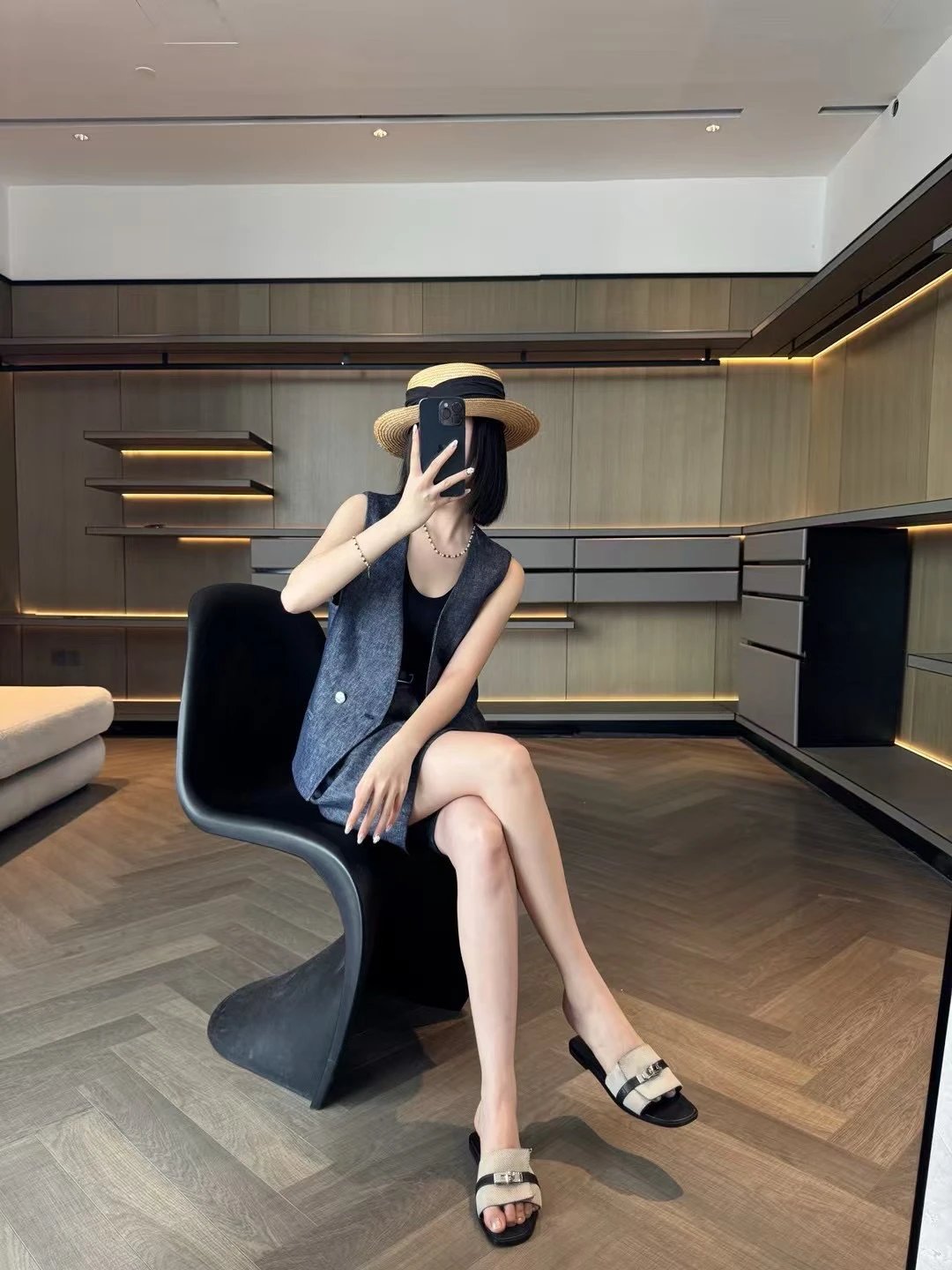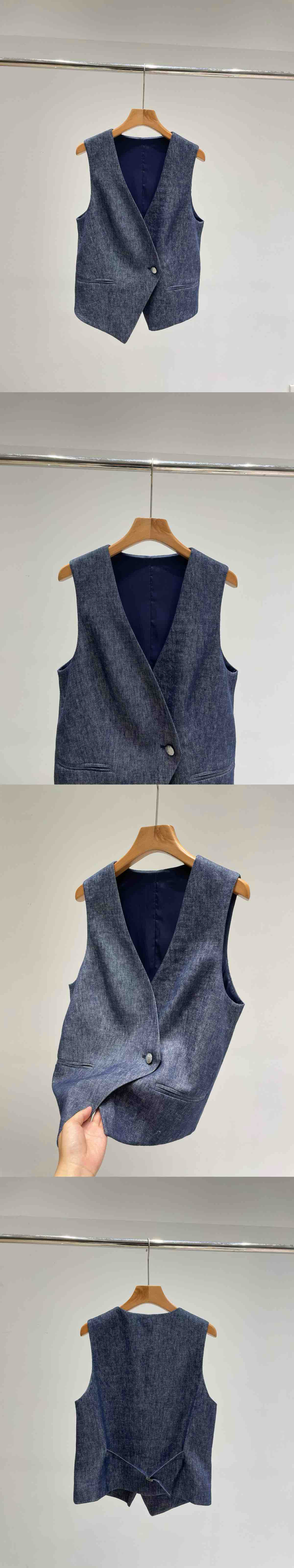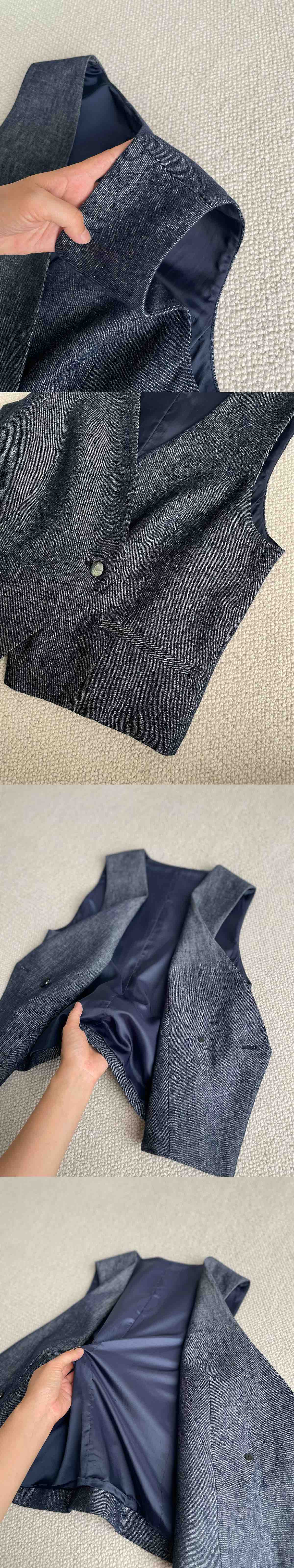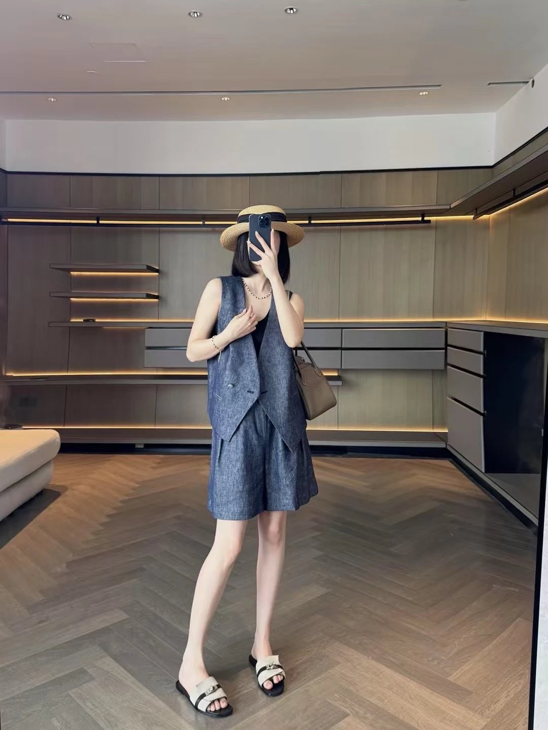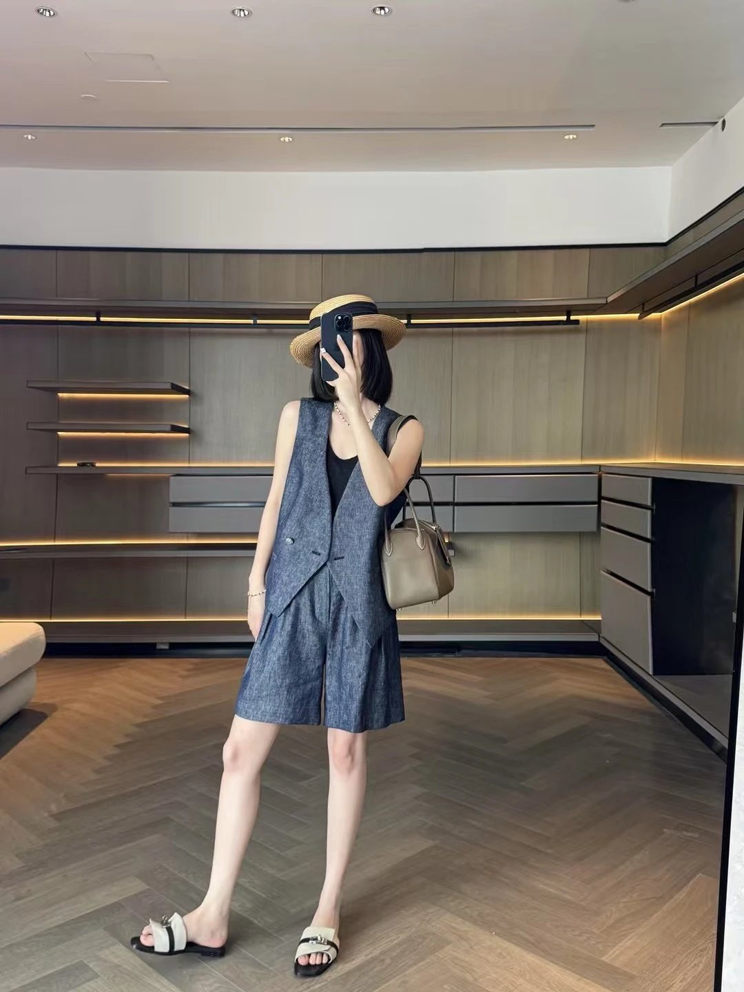实际库存 售完无补 真丝亚麻牛仔套装 马甲背心/短裤 日本进口面料 6A级桑蚕丝