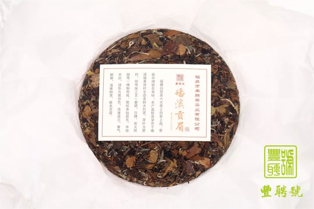 丰聘号·磻溪贡眉 福鼎白茶系300克紧压饼,包装精美,延续了丰聘号一贯的风格。