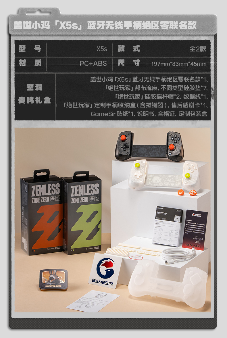 盖世小鸡X5s绝区零联名款手机无线拉伸手柄蓝牙安卓苹果ns平板PC电脑端Switch2空洞骑士丝之歌三角洲行动手游
