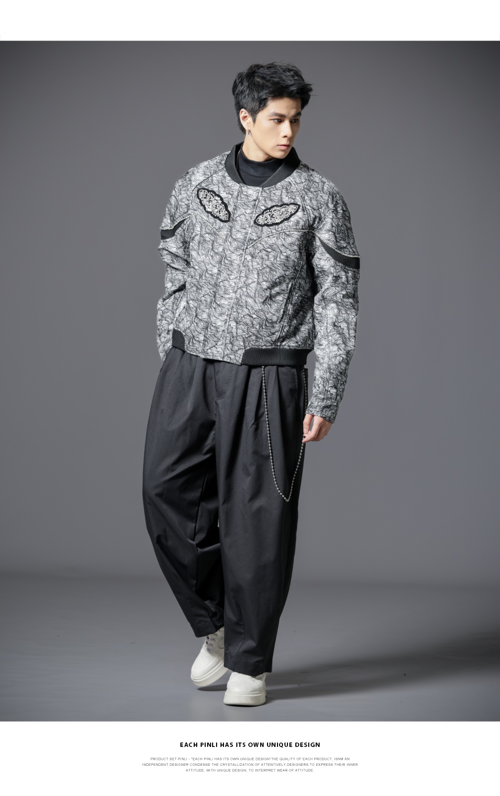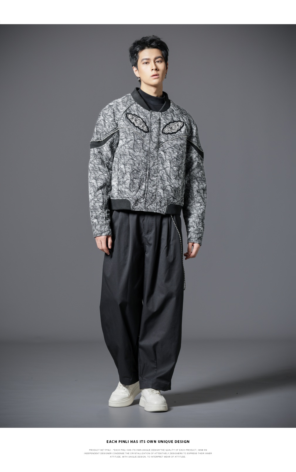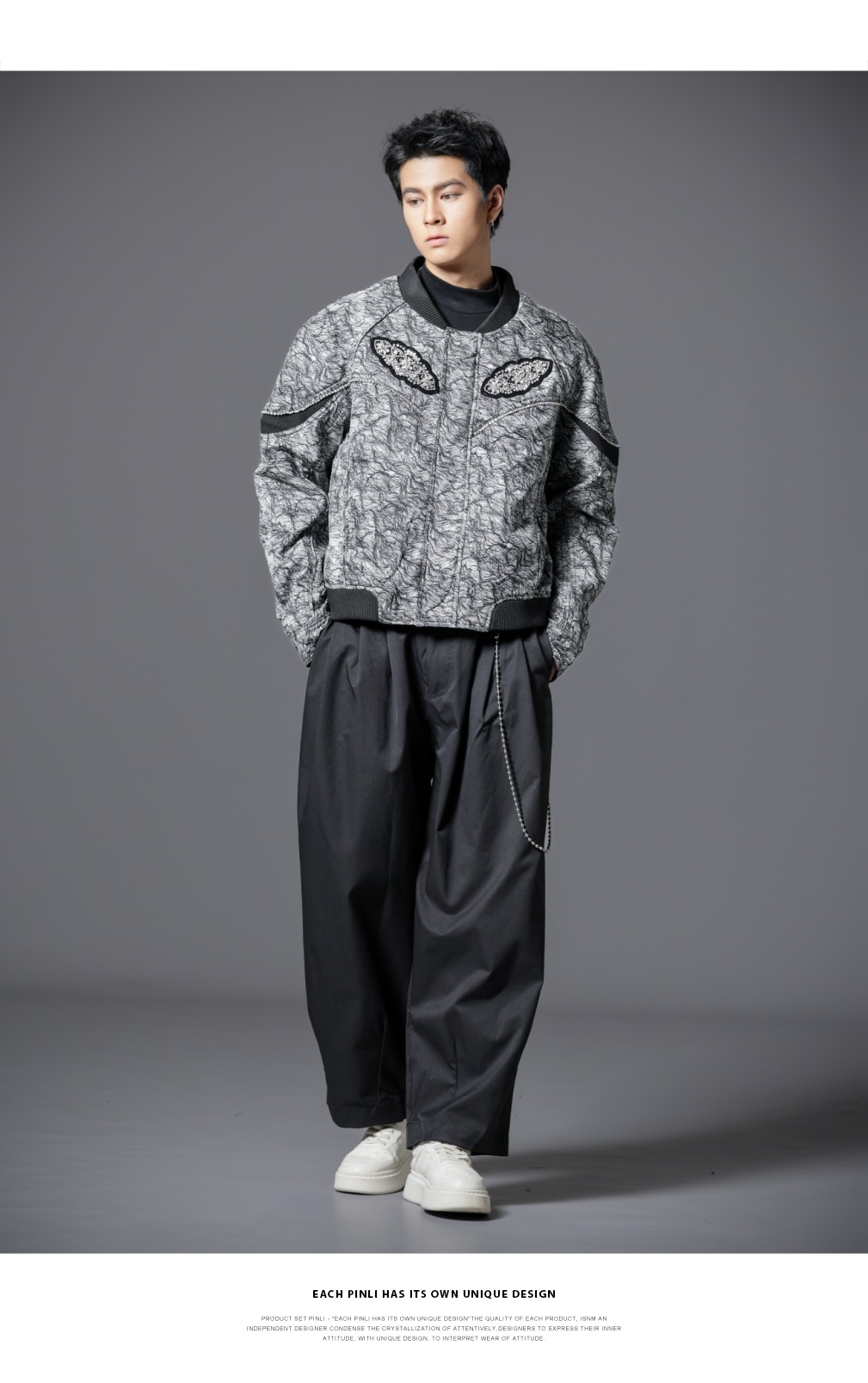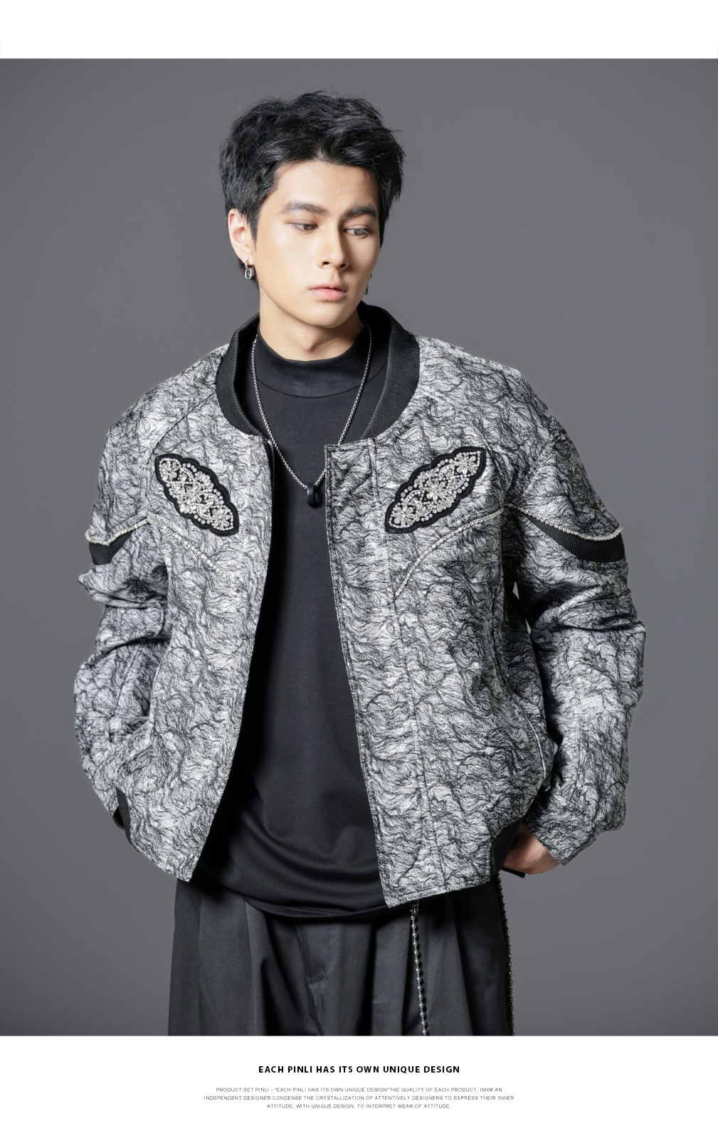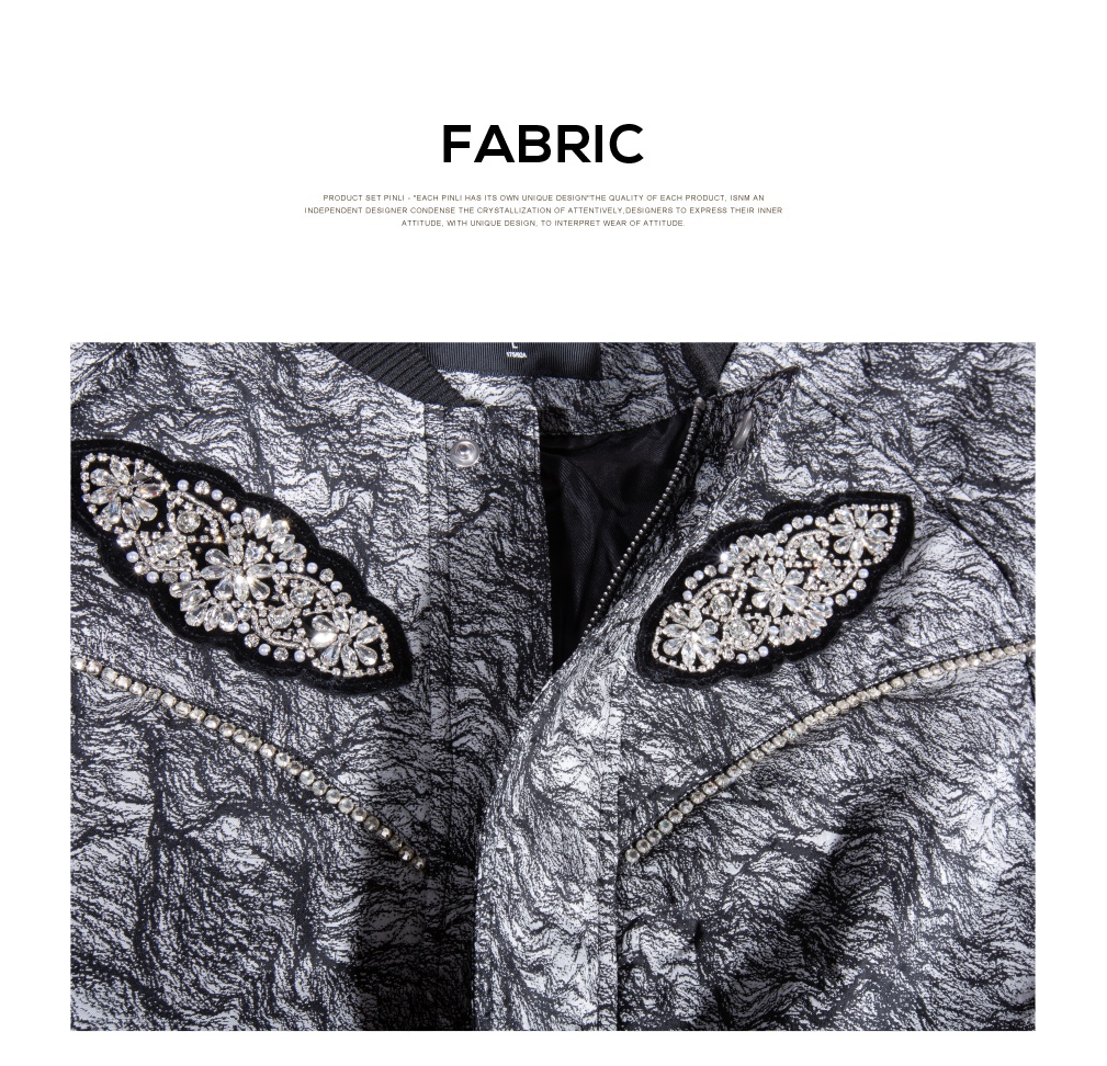 PINLI品立2025冬季新款男士棒球领贴布烫钻棉衣棉服夹克外套潮牌B253105016