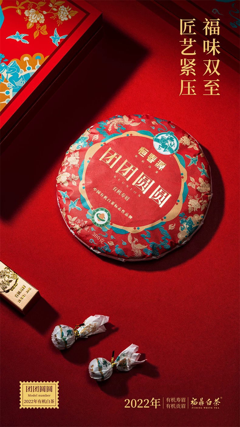 年货节 |恒春源【团团圆圆】福鼎白茶有机紧压茶22年寿眉+22年贡眉,过中国年,喝中国茶,红红火火,团团圆圆过大年