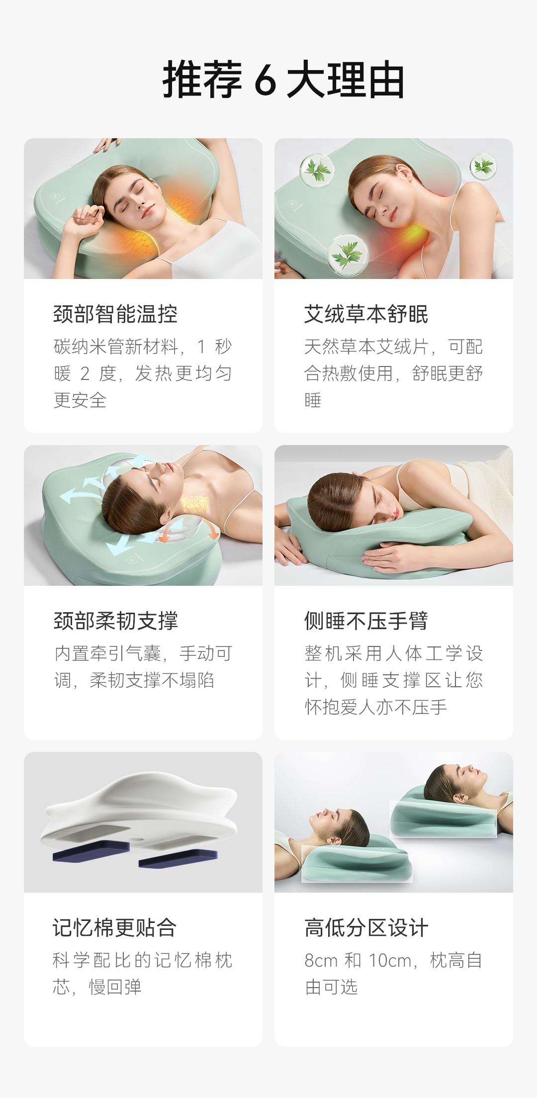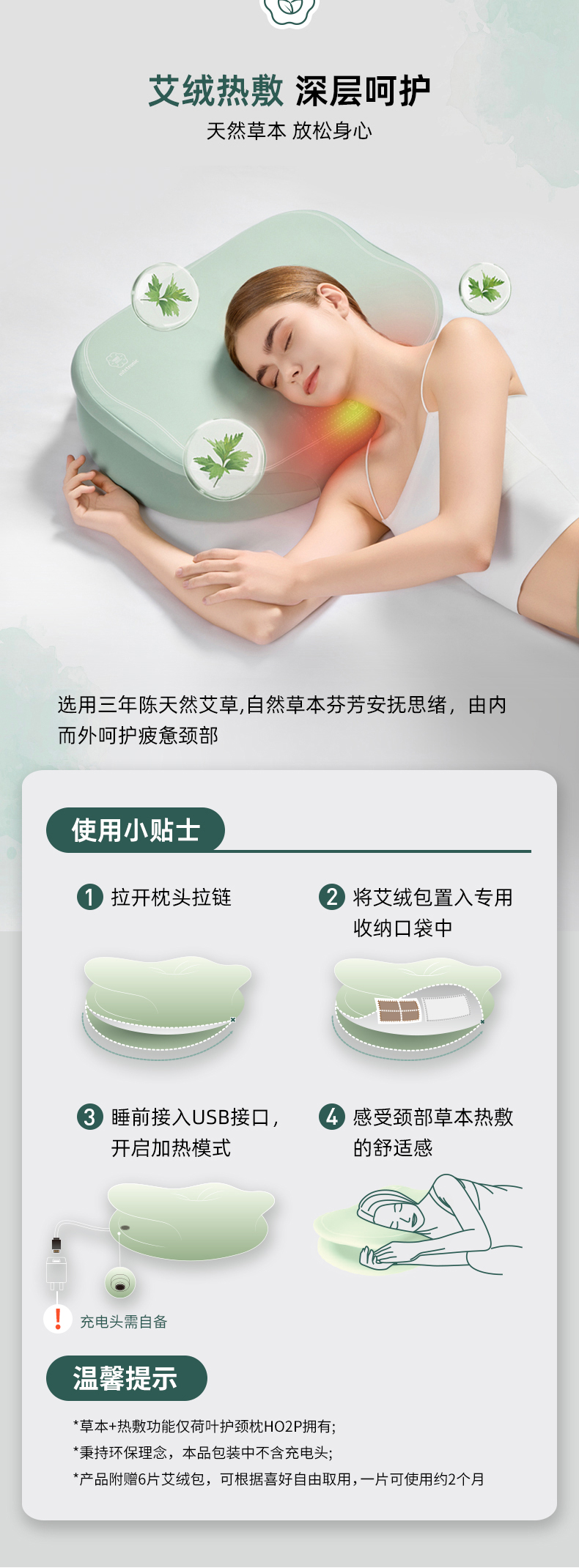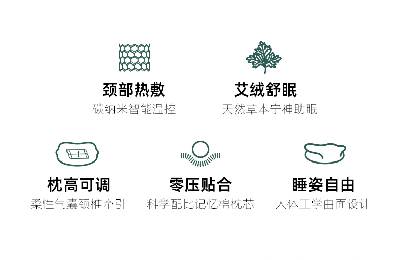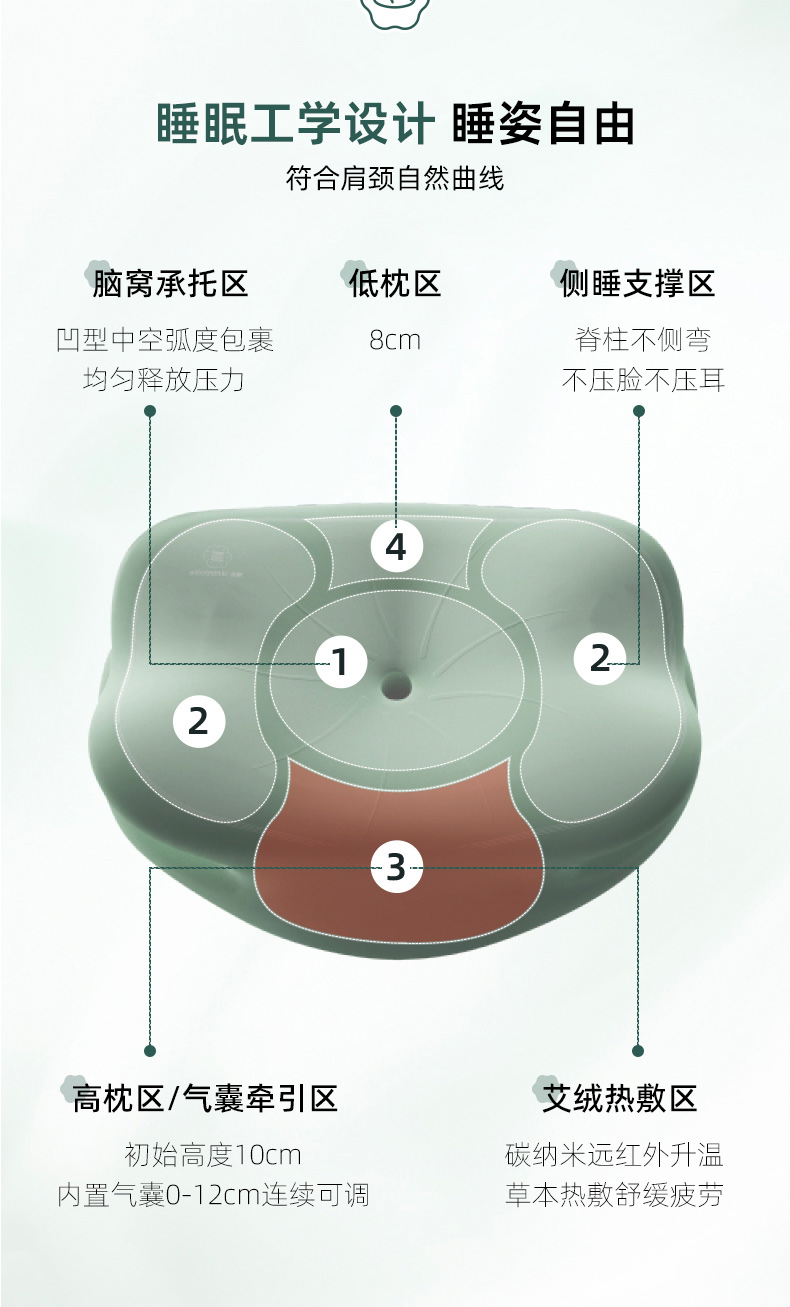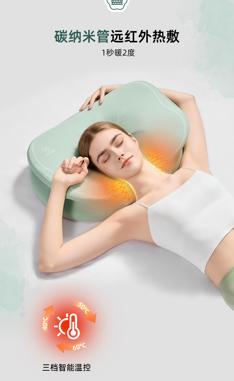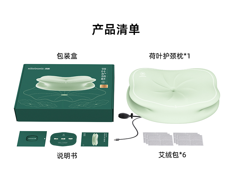 Nitetronic添眠荷叶形人体工学碳纳米艾绒热敷护颈枕 艾绒草本气囊牵引枕