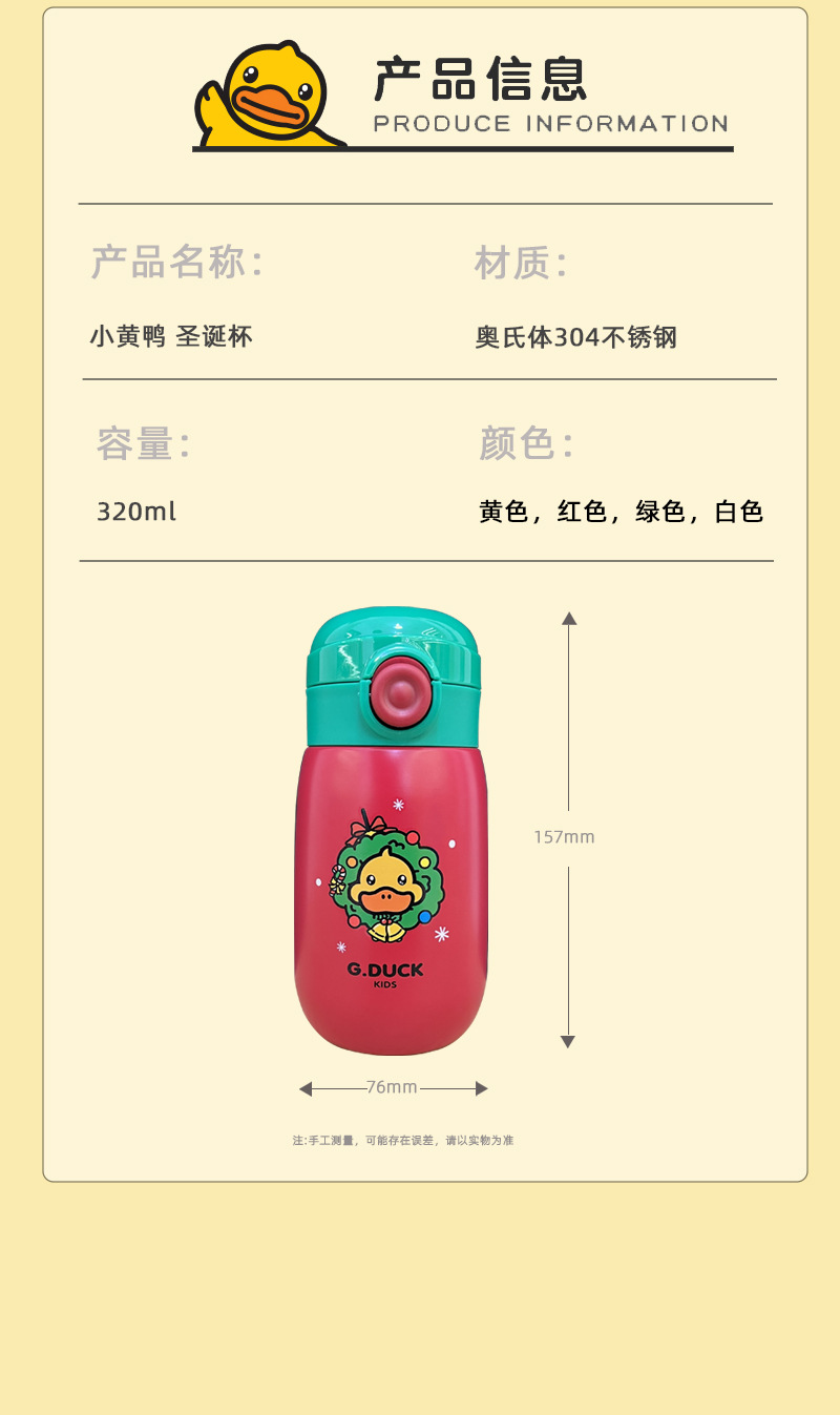 【食品级304不锈钢材质!小黄鸭儿童保温杯】迷你保温杯学生女生高颜值杯子有着高颜值,同时也兼具保温保冷两种功能。携带方便,适合学生、女生使用