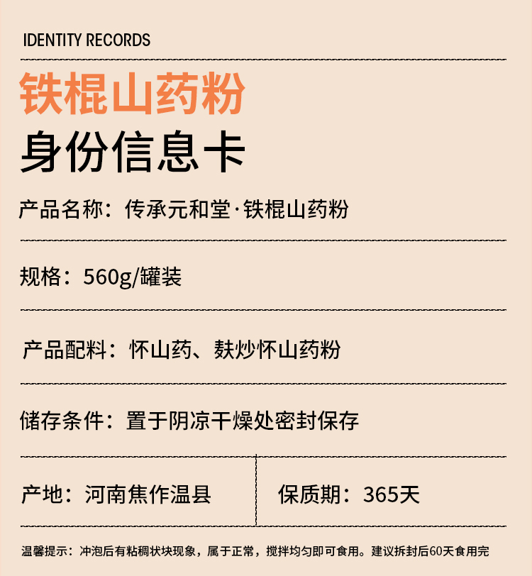 「铁棍山药粉」560克罐装 | 河南焦作温县垆土怀淮干粉儿童老人营养健康早餐代餐 | 阳阴虚养生 | 元和好物迷罗亲研