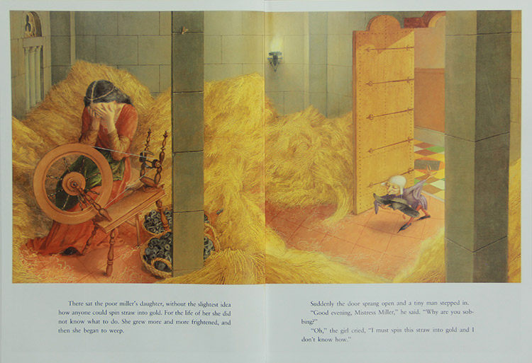 因为父亲轻浮的许诺,磨坊女被锁进了房间里,还被嗜金的国王要求把干草纺织成金丝,否则就活不过明天。正当磨坊女为自己的生命担忧得开始啜泣时,一个古怪的小矮人出现了,并主动要求帮助磨坊女纺成金丝,只要磨坊女能够提供东西来换取。当金丝纺成,国王只是贪得无厌,想要更多的金丝。后来提出只要金丝纺成,就迎娶她当皇后。后来磨坊女没有东西来换取小矮人的帮助,只能答应了矮人无理的要求----拿她和国王的长子来交换。看着怀里可爱的宝贝,磨坊女是该怎样保护自己的孩子?她又是怎样化解危机的?