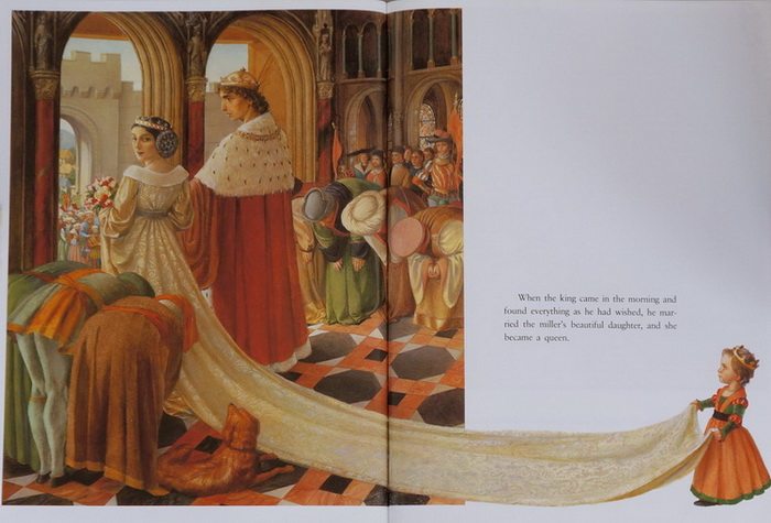 文艺复兴风格华美演绎最具古典美的格林童话经典绘本,书中的画面闪耀着温暖而柔和的金色光泽,人物形象立体丰满,构图均衡和谐,散发出典雅的韵味,让人想起拉斐尔、伦勃朗等文艺复兴大师的名画。