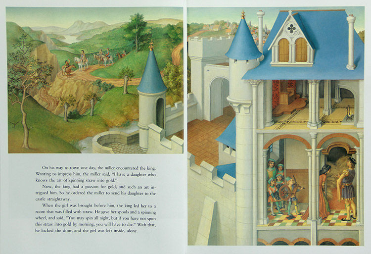 O.Zelinsky的图画以不可思议的美和卓越的独创性打动读者。每一个跨页逼真地展现了一个富有细节、色彩和感性的世界,如同我们自己的世界,同时也充满了非世俗的虚幻的故事魅力。无论是描述被丢弃的孩子的恐惧和悲痛、面对富丽堂皇的糖果屋的喜悦,还是和家人团聚的欢欣,画家都捕捉到了实质上和情绪上的细微差别。