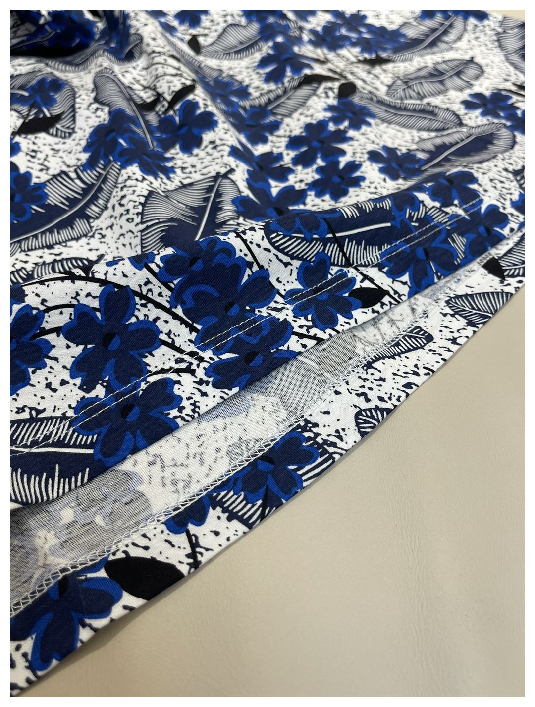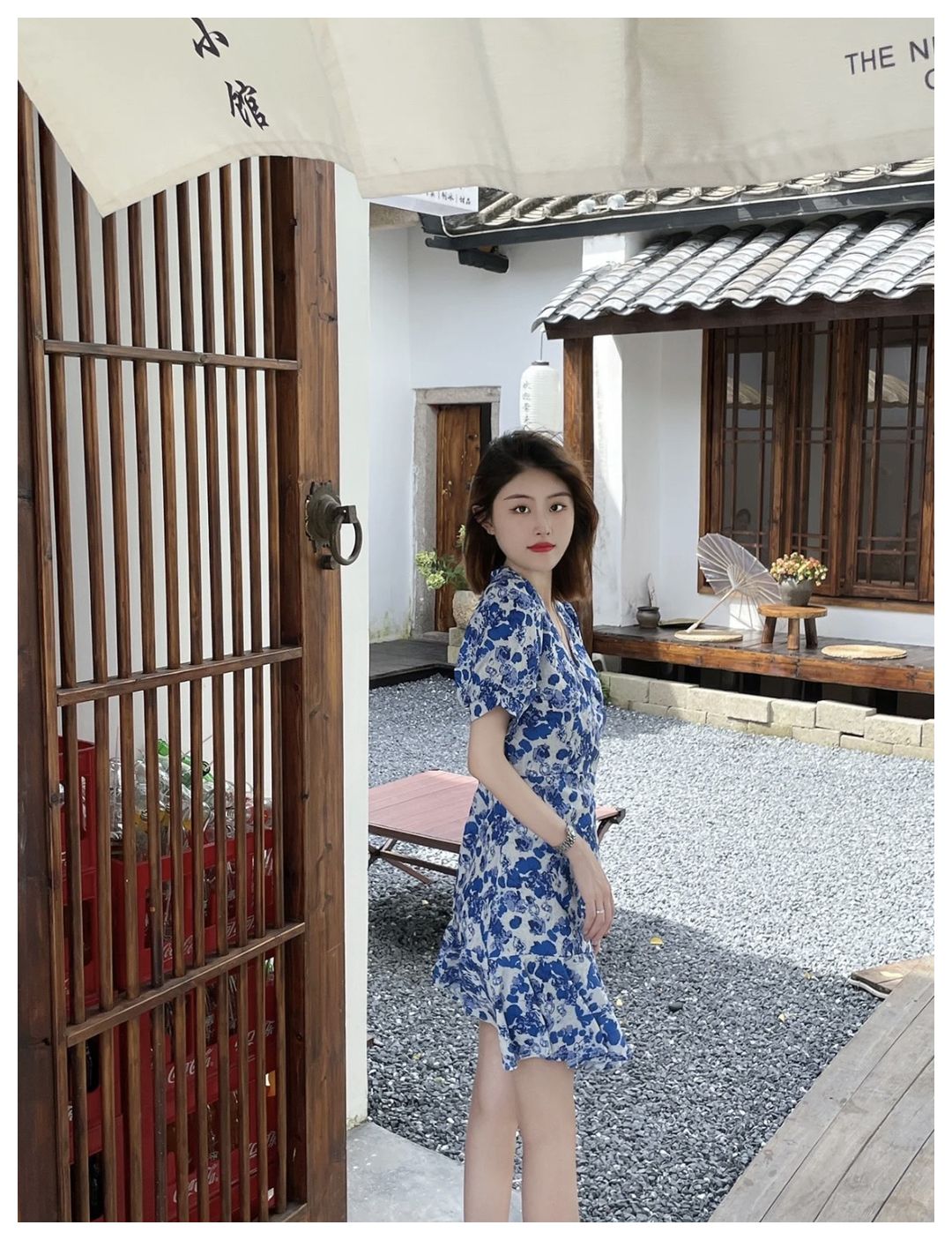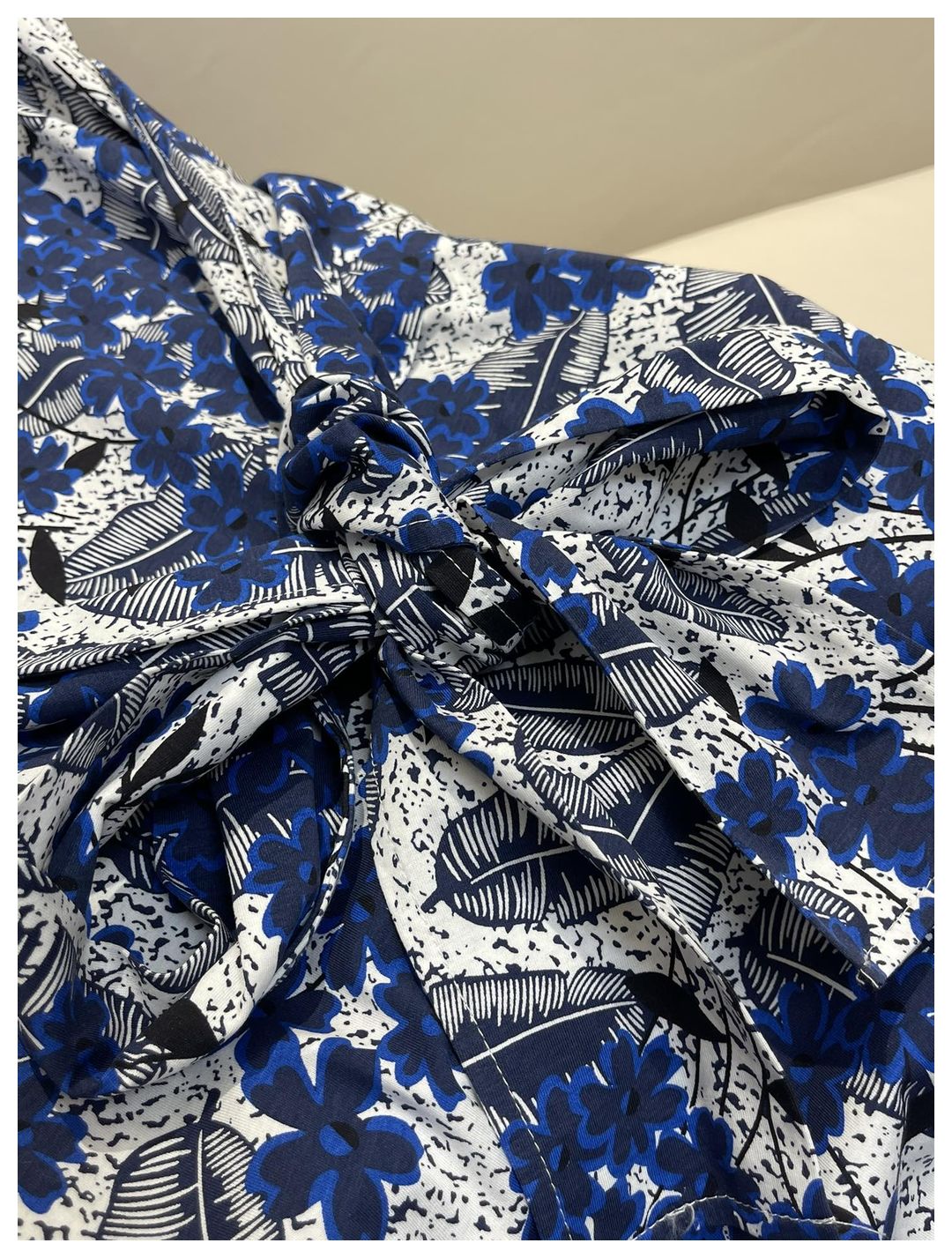 棉府棉配以地中海植物印花,神秘的深海蓝色,摇曳的芭蕉花叶,上身显白,抬肤色,配一条本布腰带,又显瘦又好看,好穿也好打理,旅游度假风 ,打卡拍照很出片!