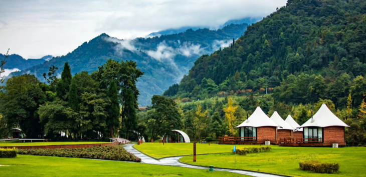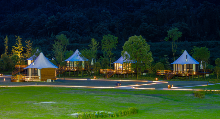 纯白的韩式帐篷,极简自然野奢风,没有过多的装饰,所见即所得,睡进群山深谷的拥抱之中,在满溢湔江风骨的美景里,走出房间,仰望星空。归于每一寸山林。