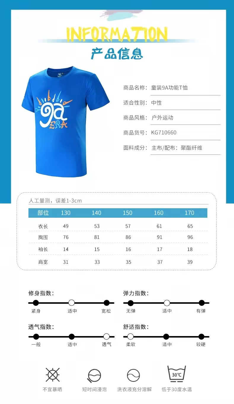 夏季凯乐石户外运动速干T恤男女童装轻薄透气快干短袖T恤KG710660