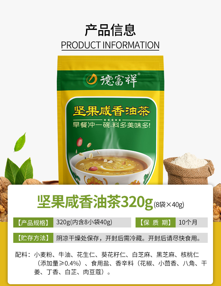 【特惠组合】德富祥 320g坚果咸香油茶*2袋(咸油茶),陕西特产清真美食,早餐代餐必备