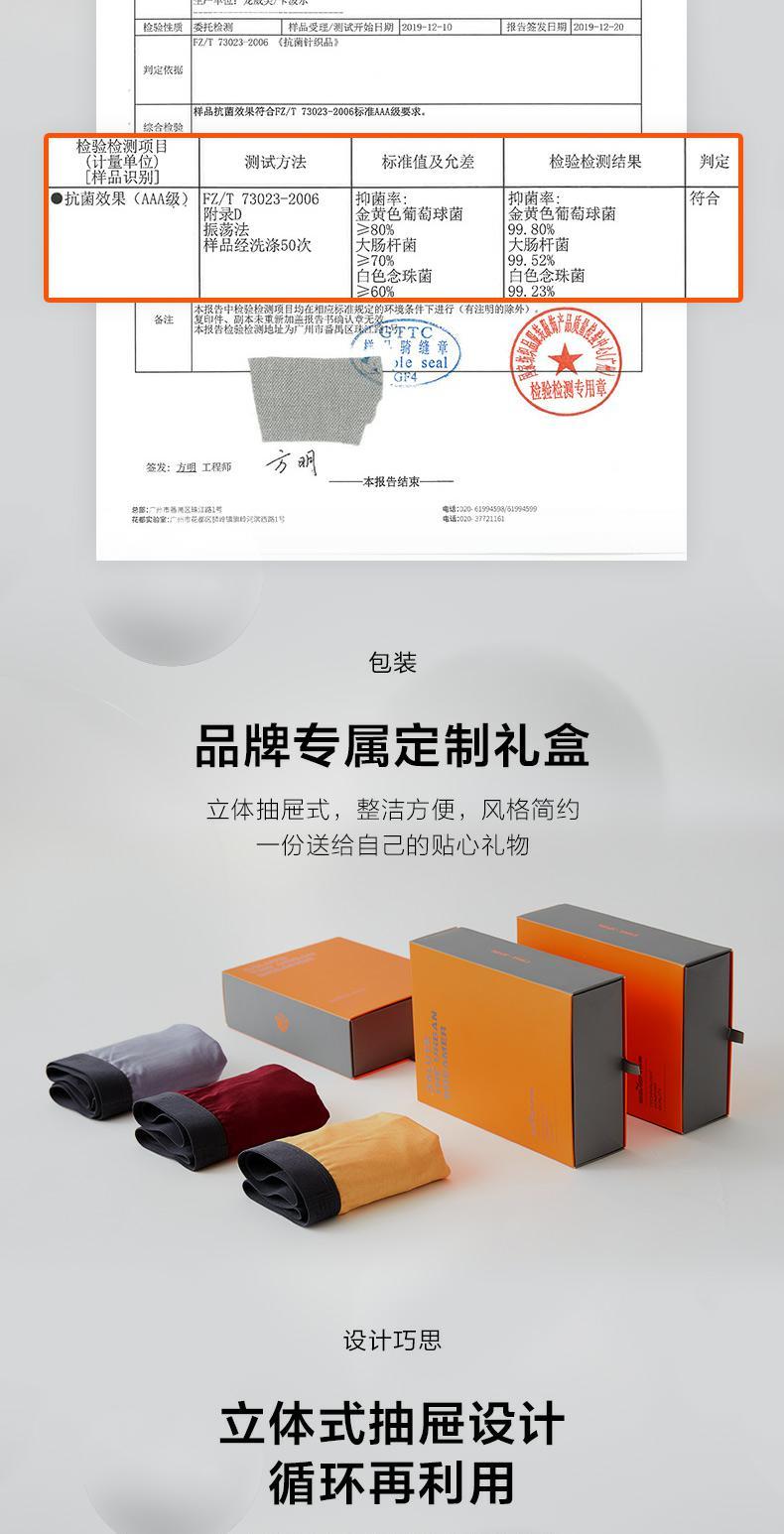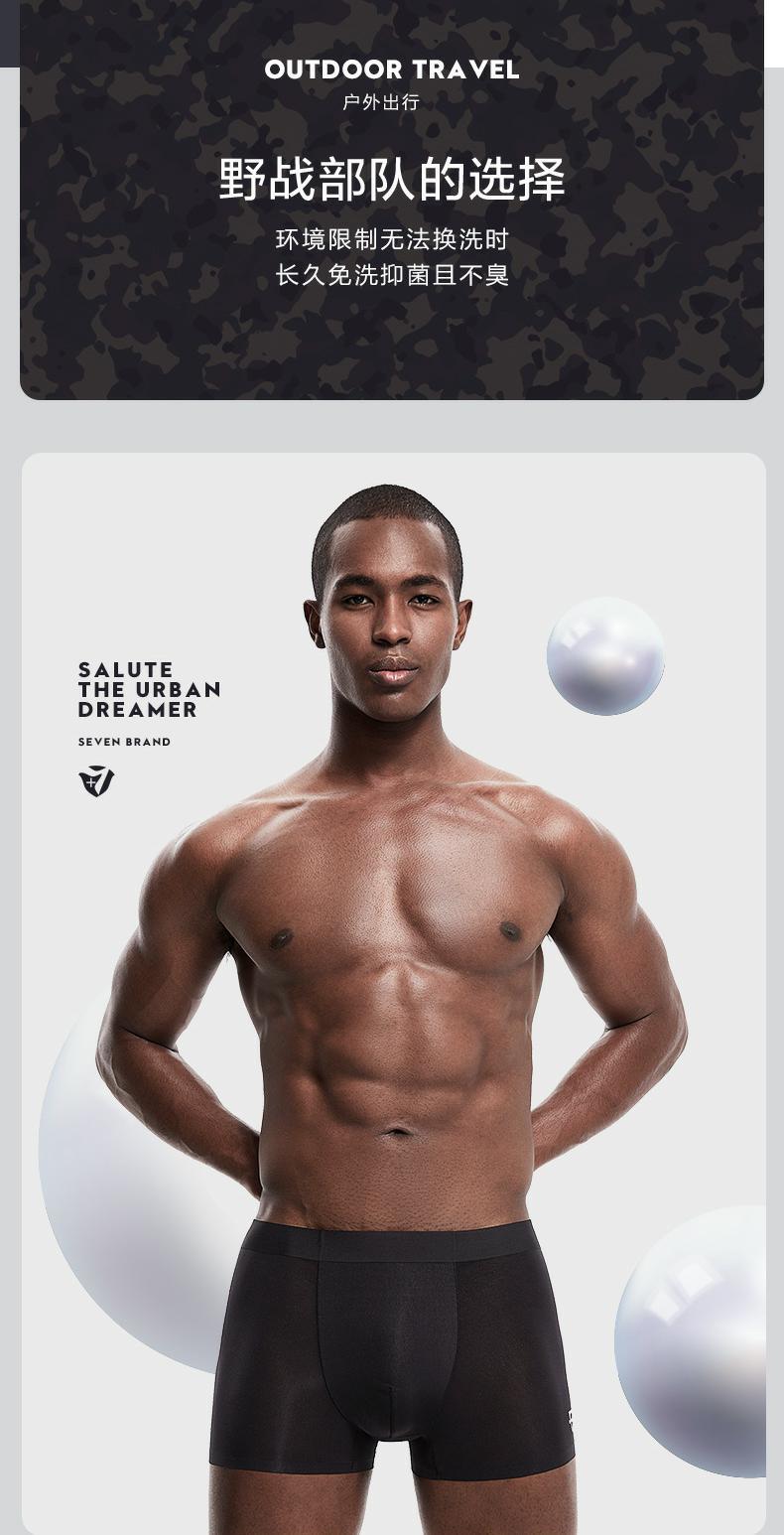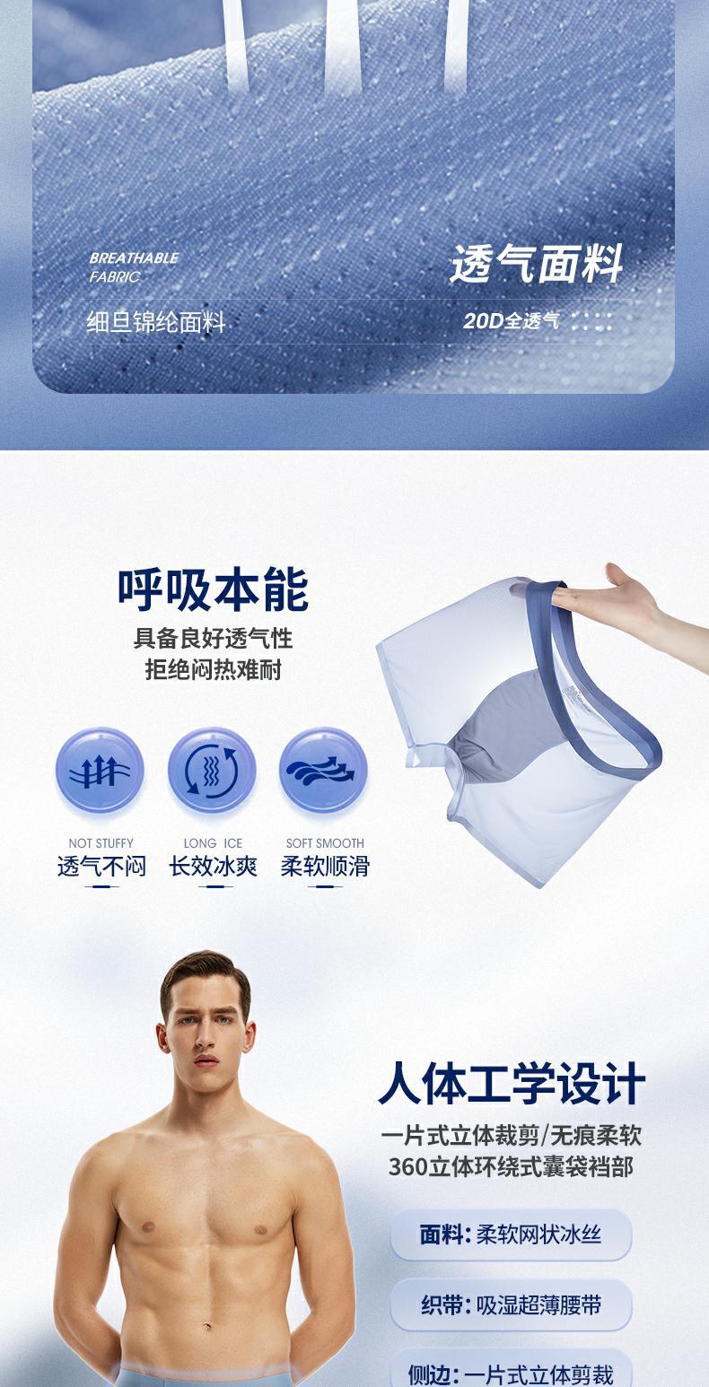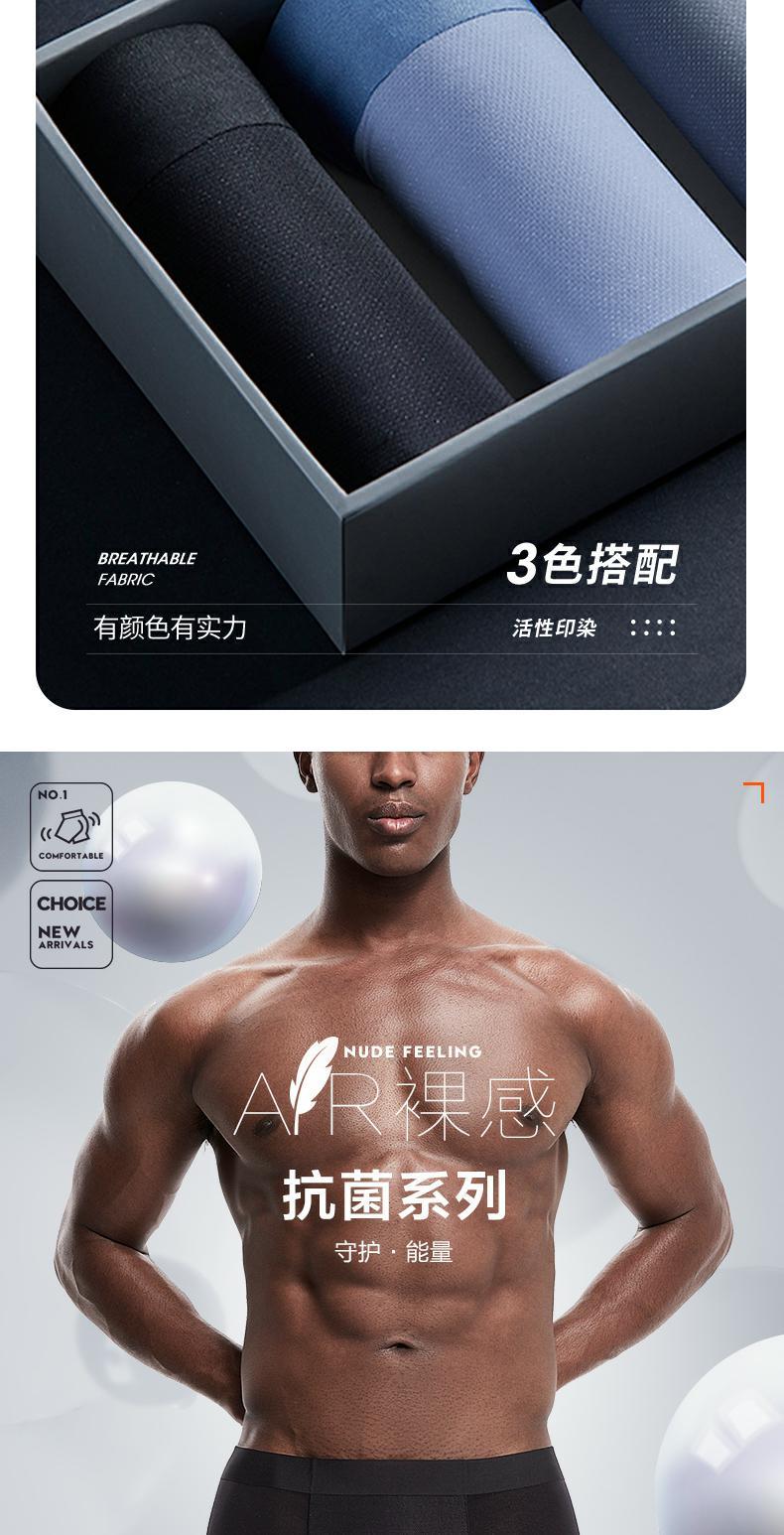 【礼盒3条装】柒牌男士内裤男冰丝四角裤运动抗菌透气平角裤轻薄无痕性感底裤头 118F70250