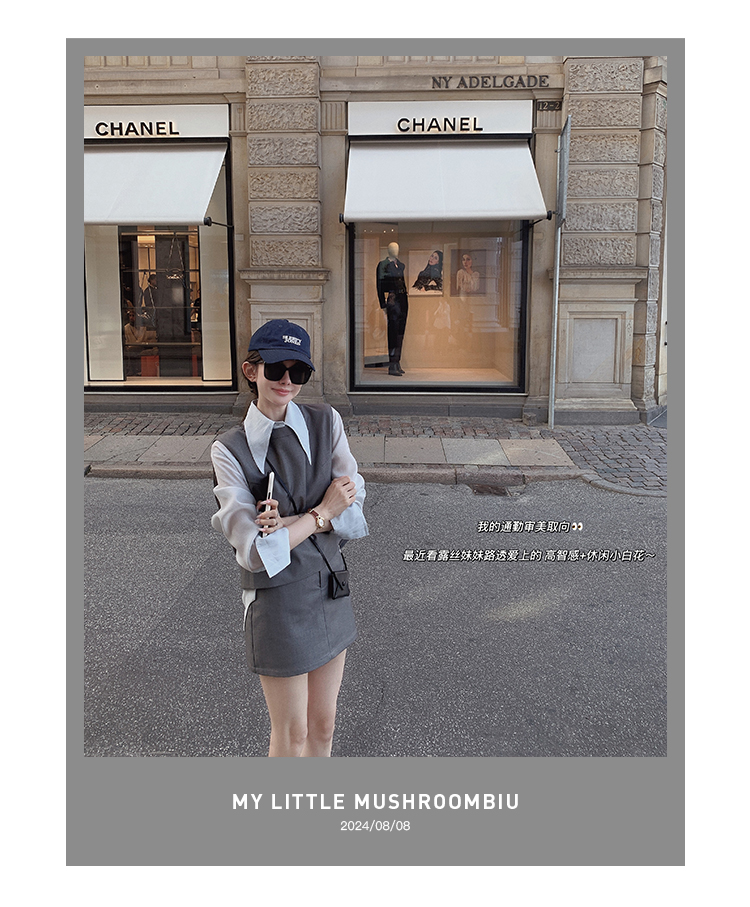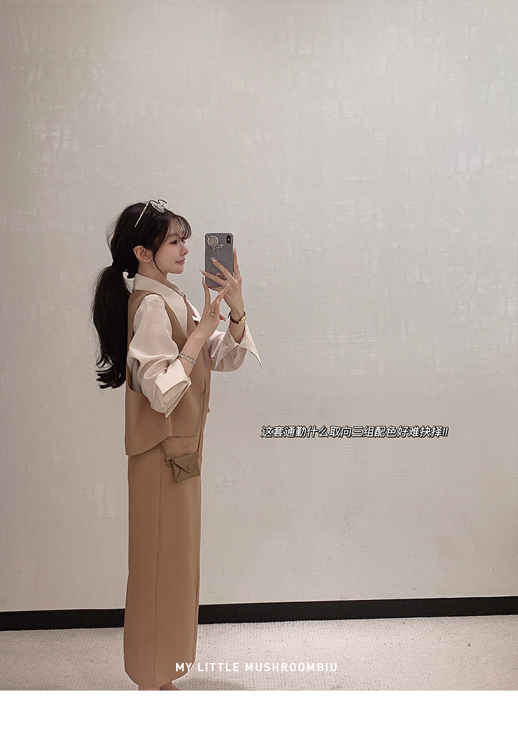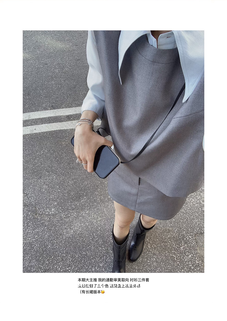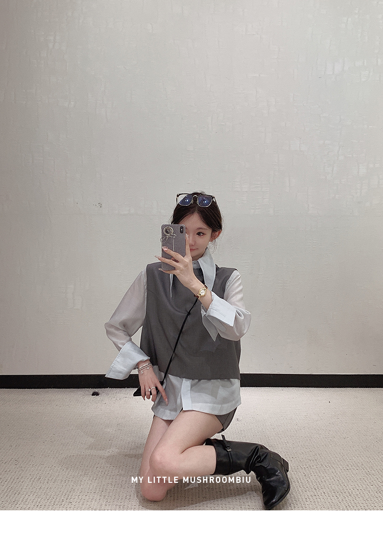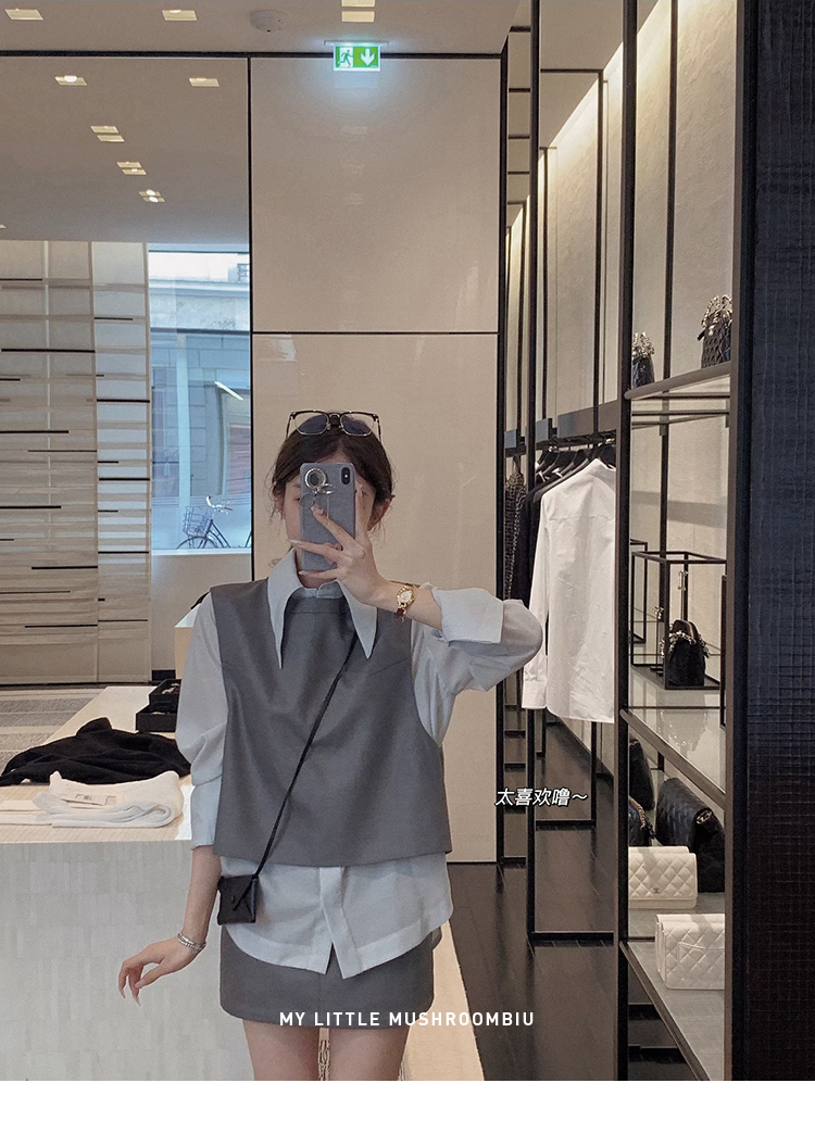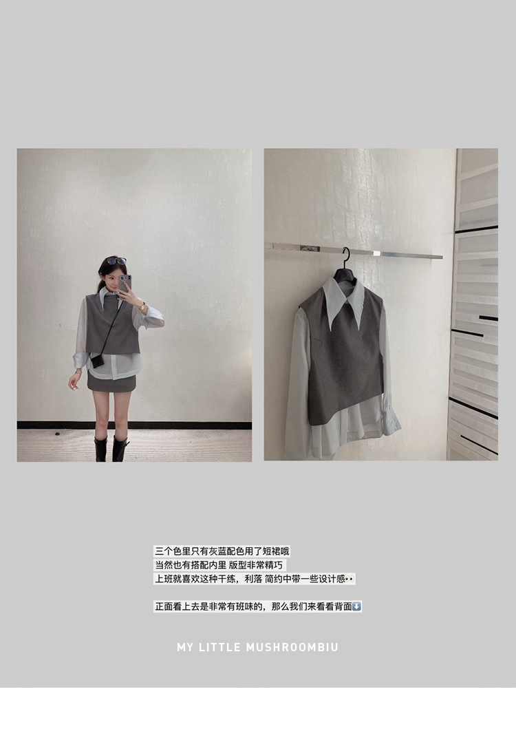金蘑菇菇 通勤审美取向 衬衫三件套/高智感休闲小白花