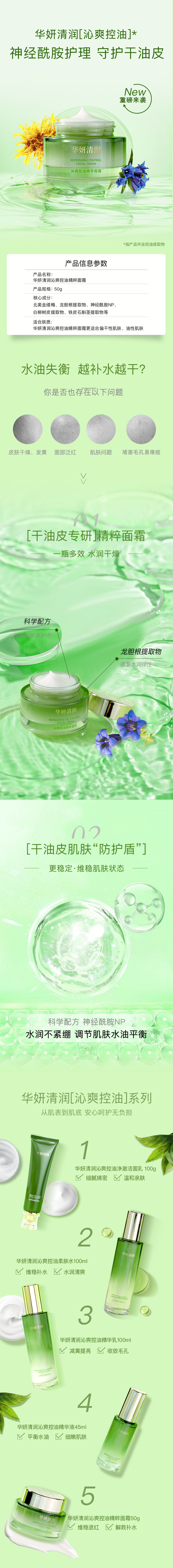 华妍清润 沁爽控油精粹面霜 50g 神经酷胺护理 守护干油皮 一瓶多效 水润干燥 水润不紧绷 调节肌肤水油平衡 (26年中旬到期!介意勿拍)
