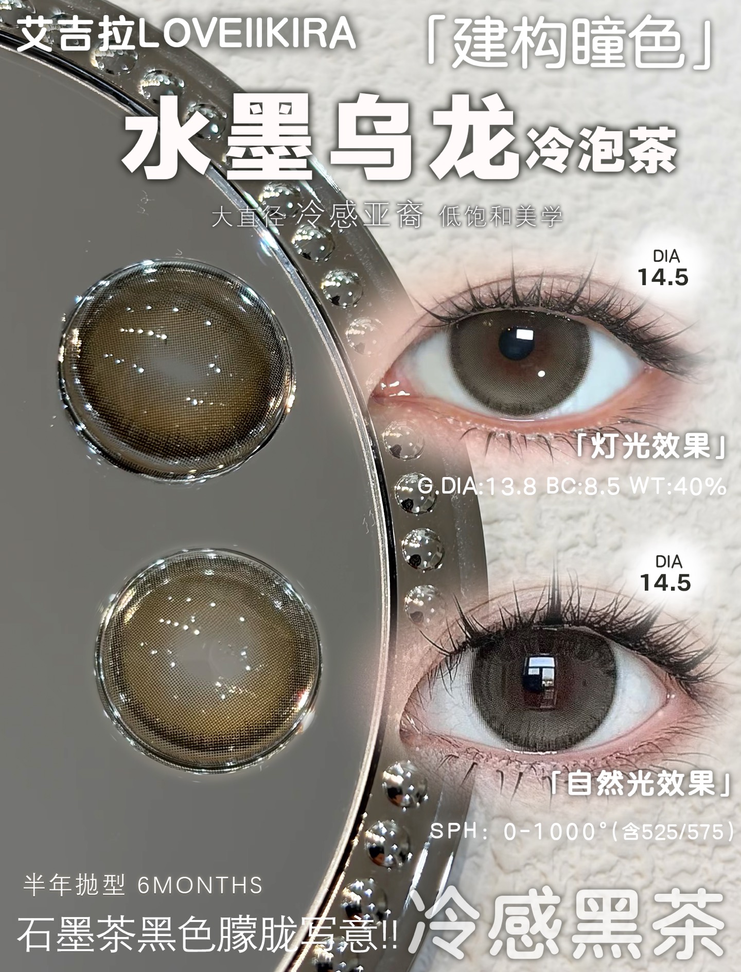 loveiikira半年抛 冷感黑茶 14.5mm 0-1000 有点点棕色