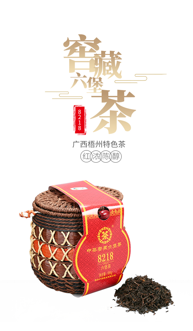 六堡茶 | 中茶 2022年中茶窖藏六堡茶8218箩装500g(2020年原料陈化)
