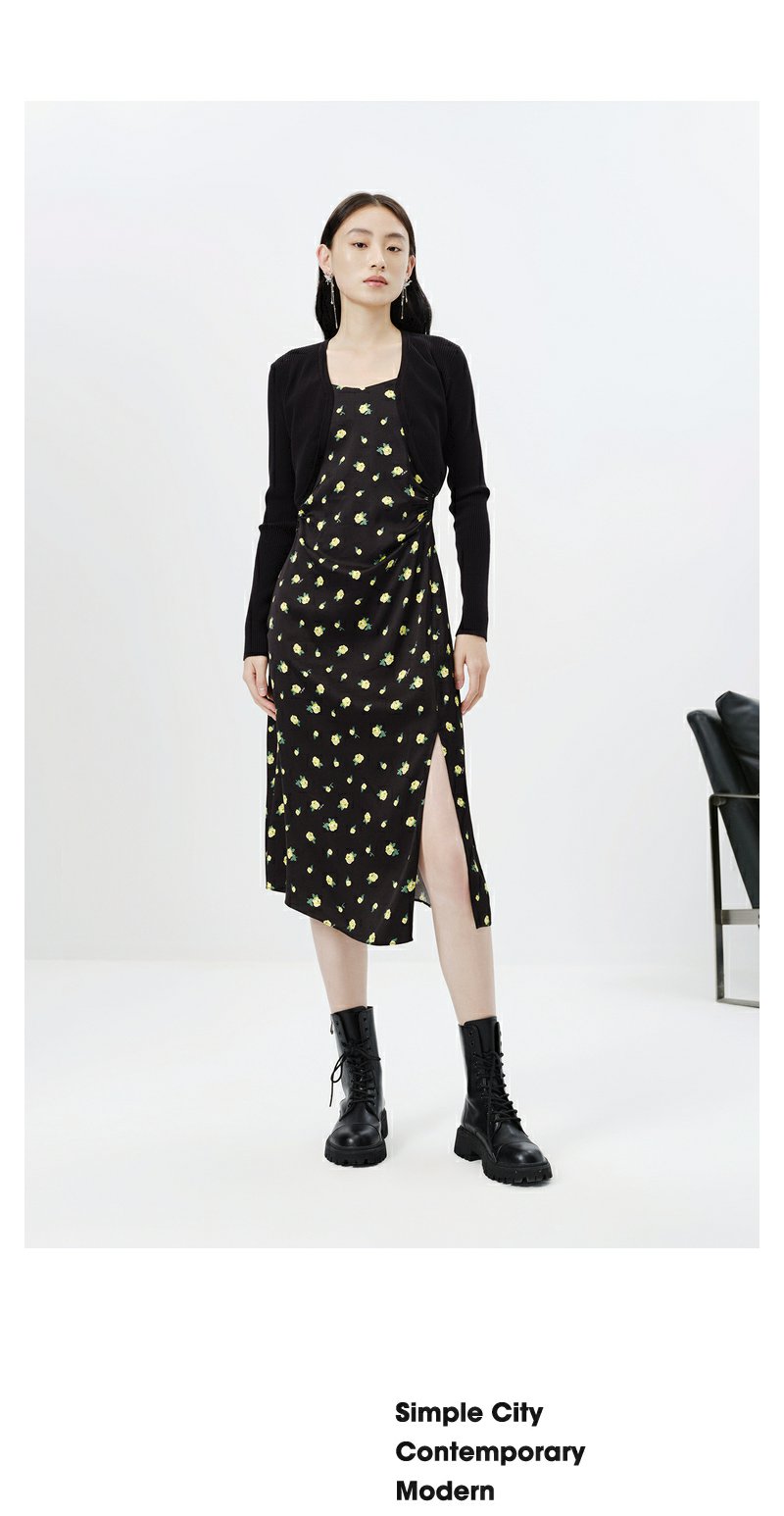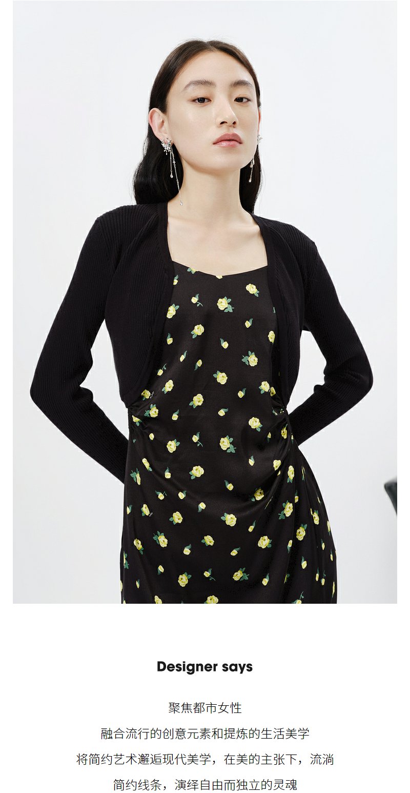 NEELLY纳俪商场同款春季新款针织衫女黑色显瘦短款开衫防晒上衣N23023A01115