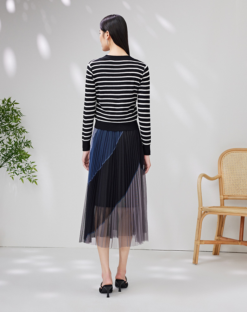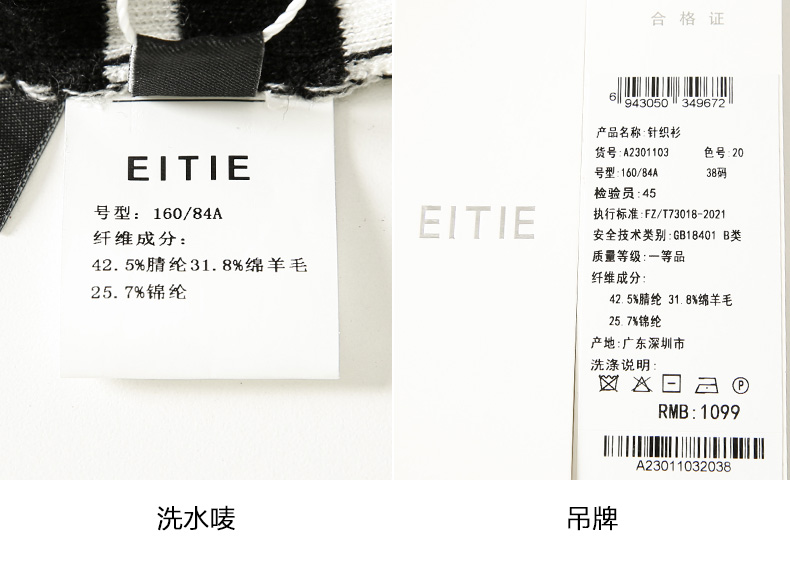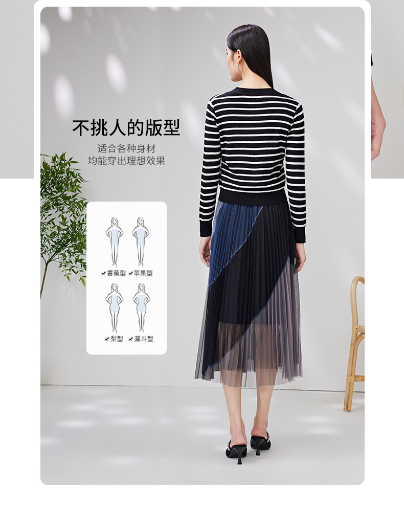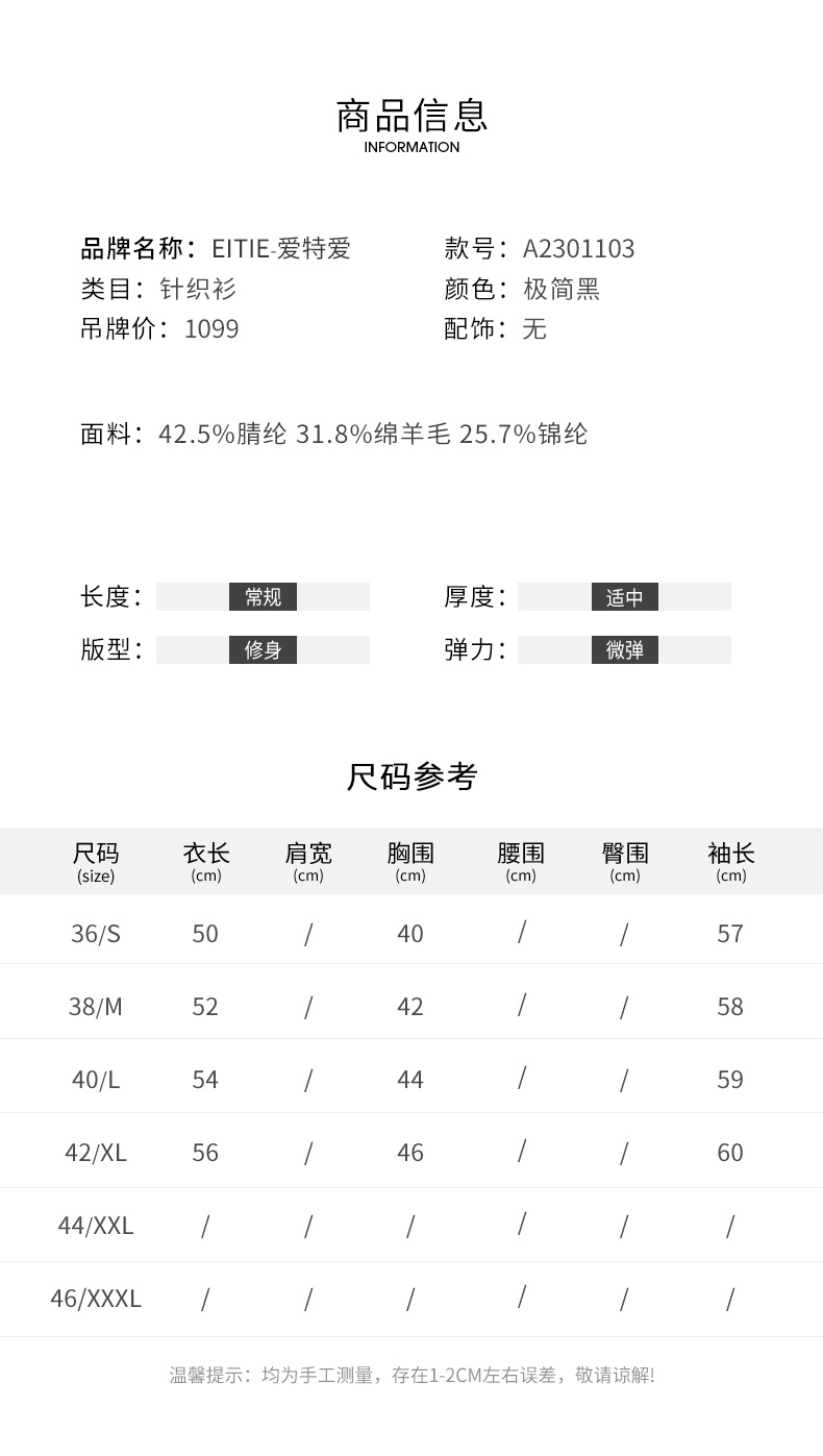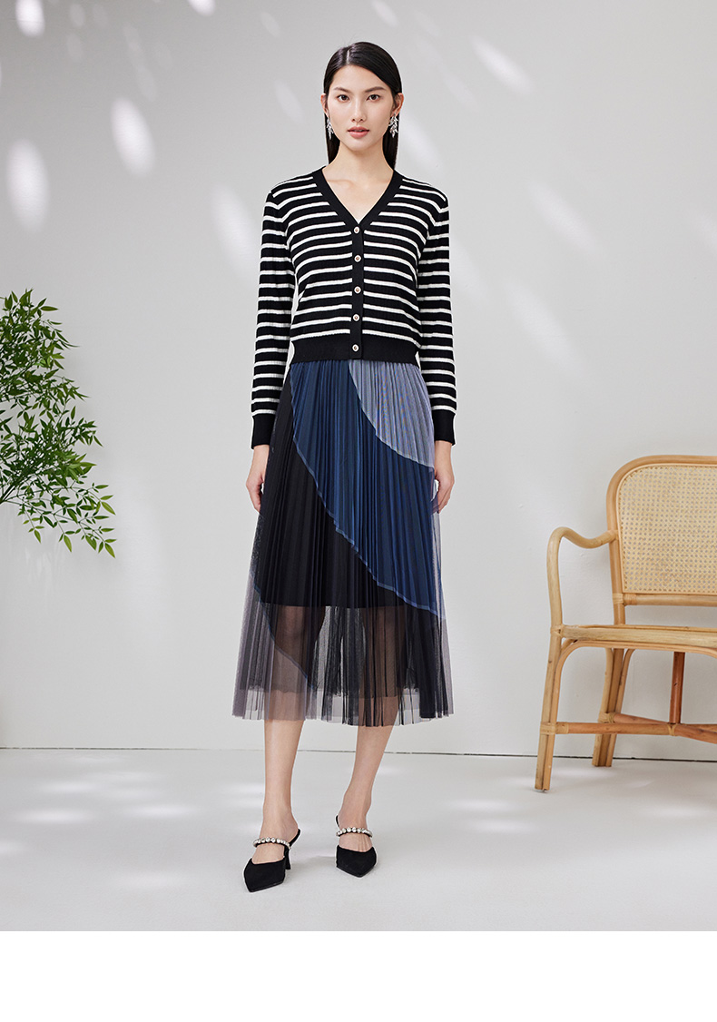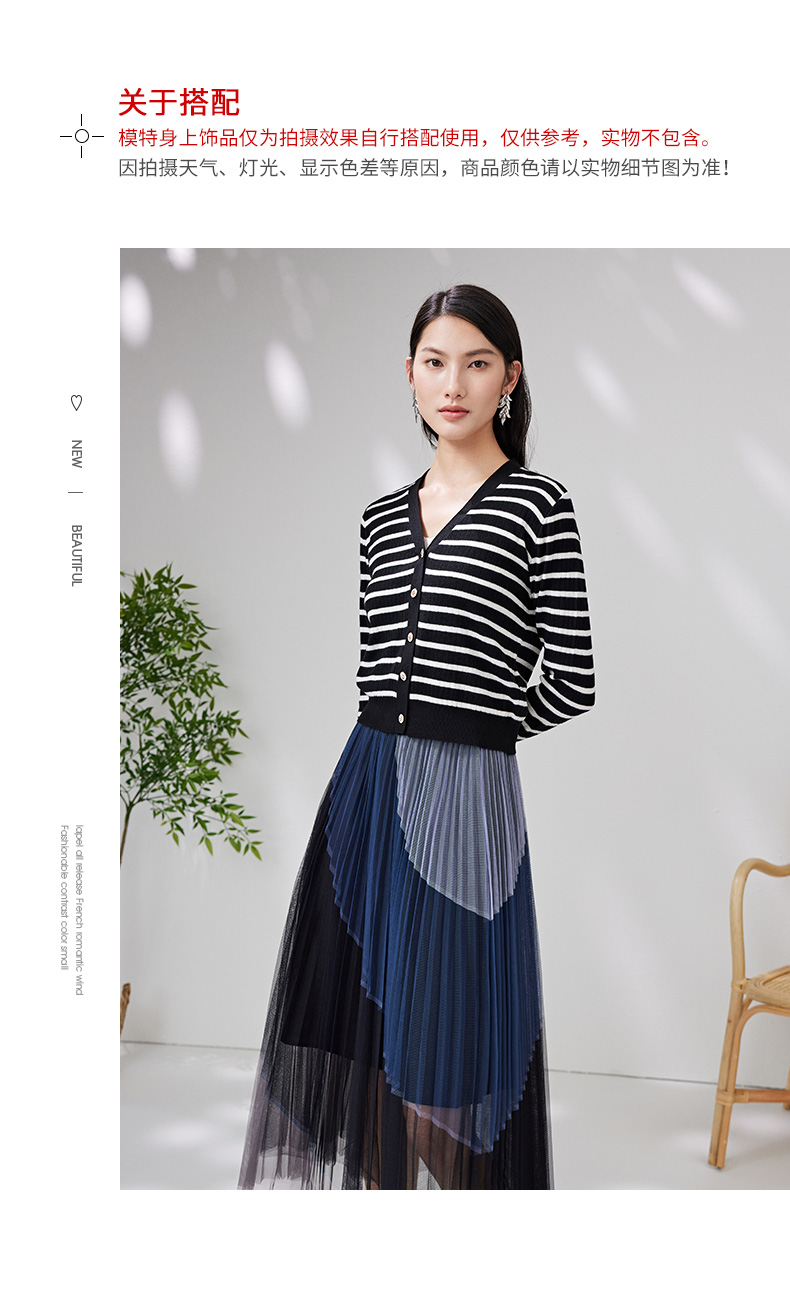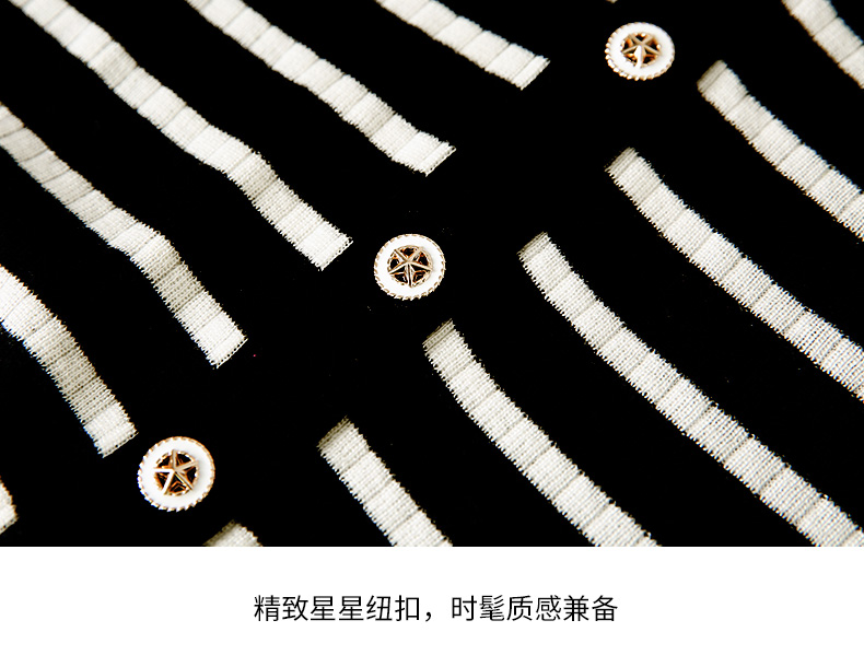 EITIE爱特爱春季新款黑白撞色条纹显瘦百搭基础简约针织开衫A2301103