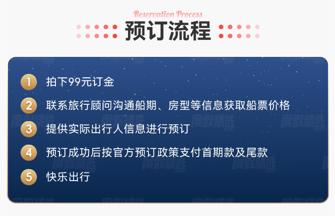 尾款--请最晚于登船日前90天支付全额尾款,过期未支付尾款,您的订单可能会被取消;预订首航的全部房型及全部航期的礼宾房型,支付的订金及首期款不予退还。