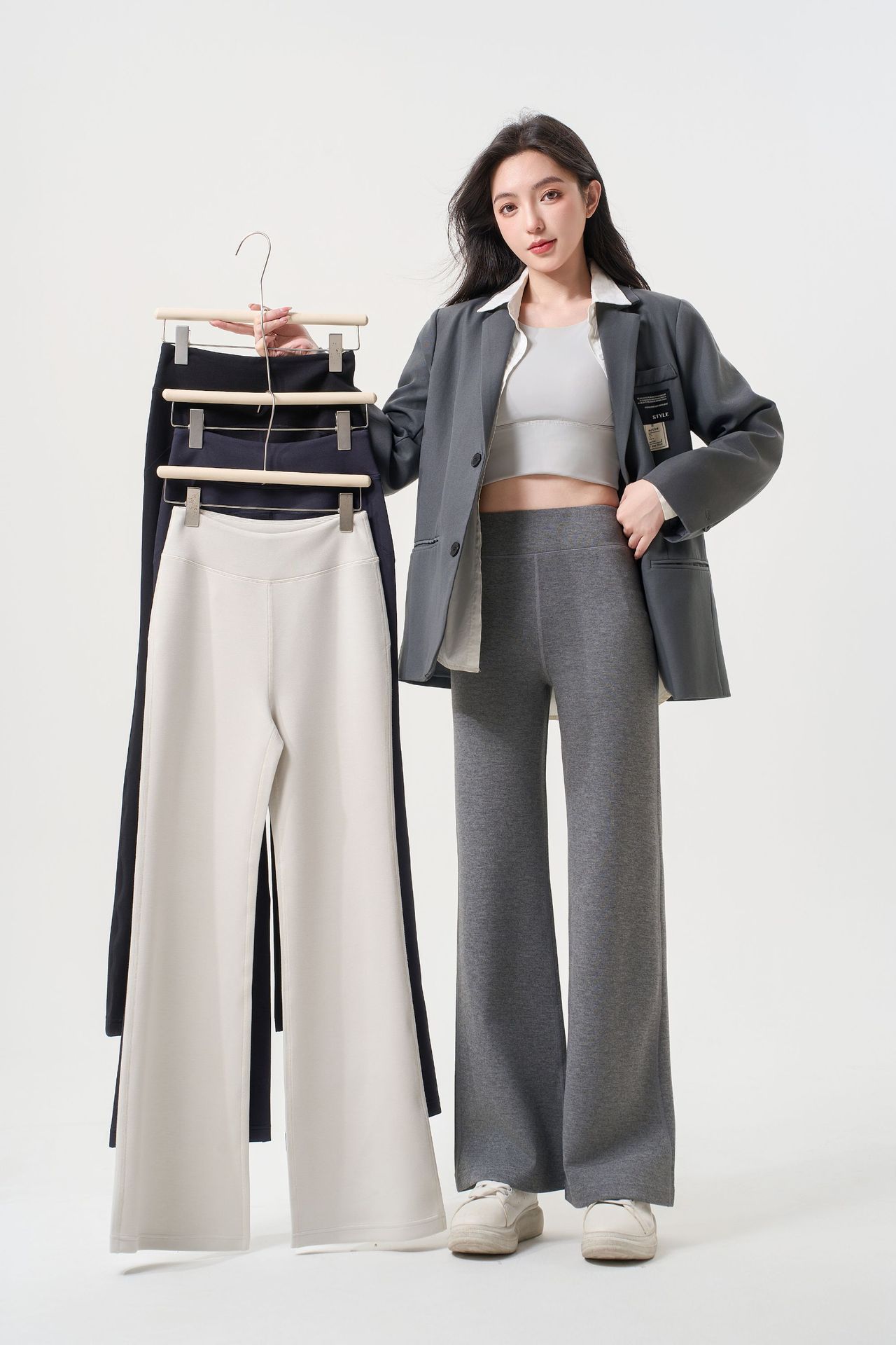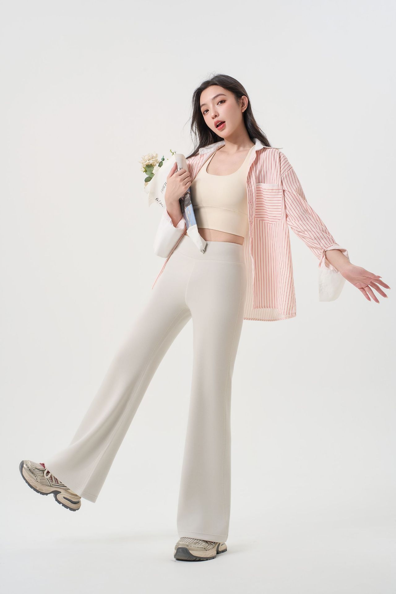 【兰精莫代尔直筒喇叭裤】春夏高腰修身显瘦 垂感微喇运动外穿休闲裤