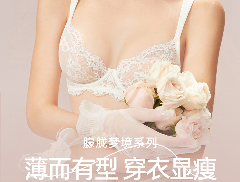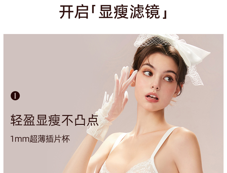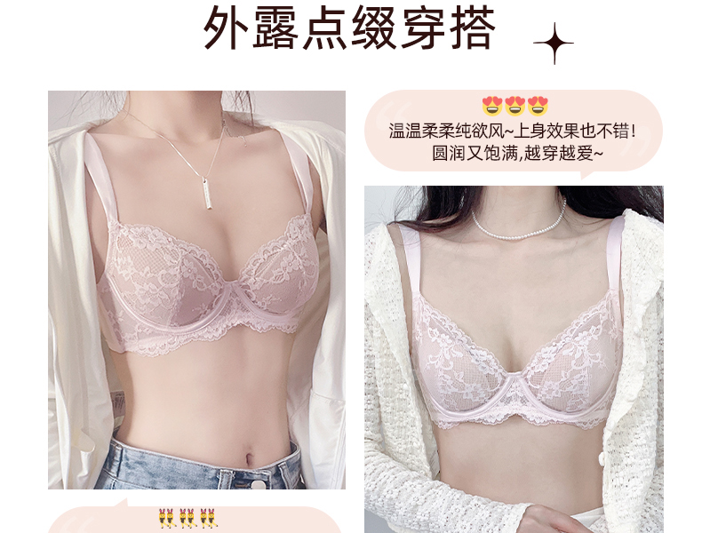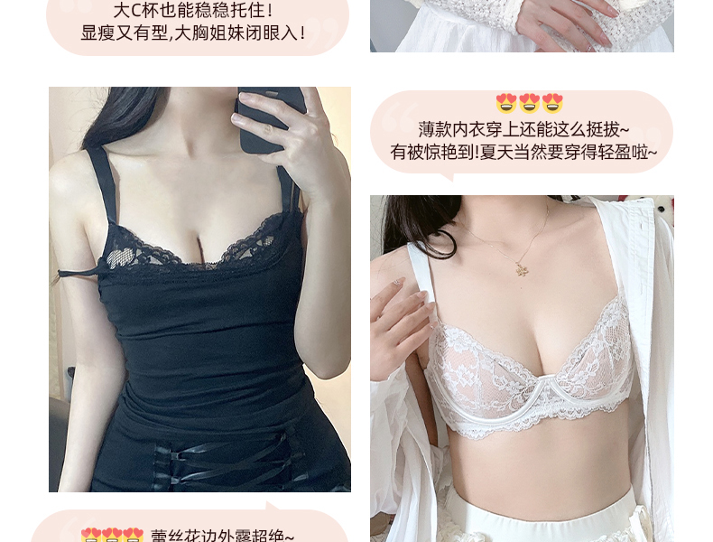 好奇蜜斯大胸显小内衣女薄款防下垂文胸罩套装新款夏季纯欲蕾丝白-雅娜 安叶